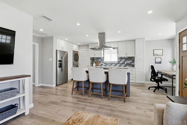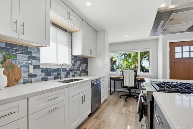 Stunning remodeled, open-concept, single-level twin home in Costa Serena, "Oceanside's best-kept secret." This beautiful hilltop community has wonderful ocean breezes, proximity to the freeway and shopping, and no HOA. The home has been completely remodeled and is turnkey move-in-ready with a 2 bed, 1 bath layout featuring a huge kitchen island and ocean views from the front dining/office area. Quiet cul-de-sac location with a huge backyard that includes a relaxing hot tub. The home has all newer appliances and includes an enclosed workshop/storage shed with direct access from the garage and patio. The private but spacious back patio is perfect for sunset barbecue entertaining. This is a deed restricted community where residents must be 55+ but there is no age restriction on ownership.