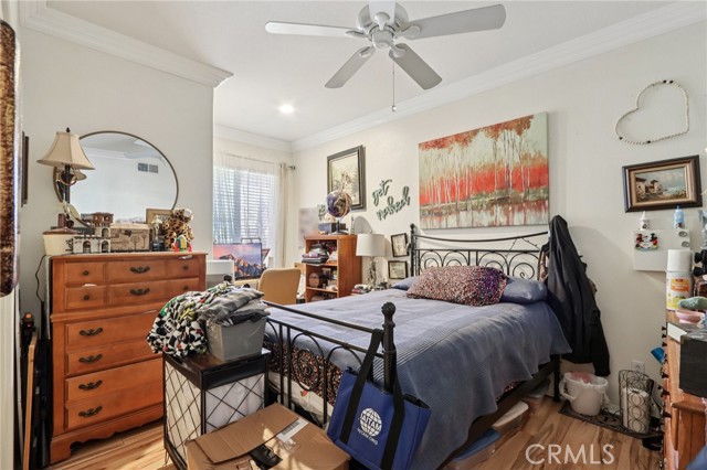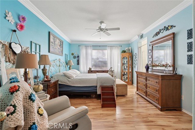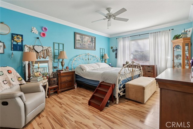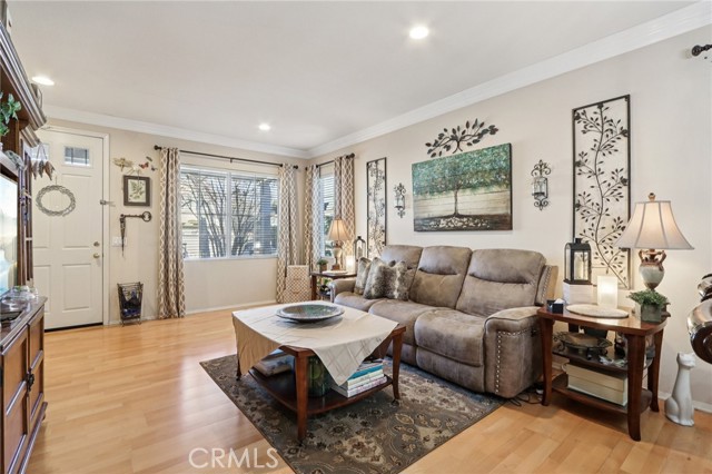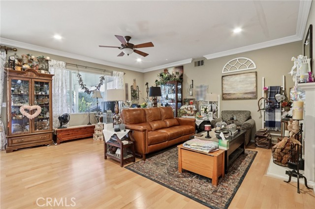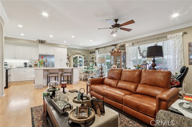 Welcome home to charming curb appeal that instantly makes you smile. From the white picket fence and mature landscaping to the warm, inviting exterior, this home makes a beautiful first impression the moment you arrive. Nestled on a quiet cul-de-sac in the highly sought-after Mapleton community, this beautifully maintained home offers the perfect blend of space, comfort, and everyday functionality with no HOA. Inside, you’ll find four generously sized bedrooms and two full bathrooms, along with a thoughtfully designed layout ideal for both daily living and entertaining. The spacious kitchen features an island with bar seating, abundant cabinet and counter space, and opens seamlessly to the inviting family room with media niches and a cozy fireplace. A formal living and dining room provide the perfect setting for hosting family and friends. The home also includes solar, a built-in office/ hallway workspace, and beautiful wood and Pergo flooring throughout, complemented by elegant crown molding. Step outside to enjoy a drought-resistant front yard and a beautifully landscaped backyard complete with multiple fruit-bearing trees, including orange and peach trees, along with an Alumawood patio cover — perfect for relaxing or entertaining year-round. A three-car garage adds extra convenience and storage. Located just steps from nearby walking trails and parks, and only minutes from shopping, dining, and everyday essentials, including Costco, Target, and Starbucks, this home also offers easy access to the 215 freeway. This charming cul-de-sac home offers comfort, space, and an unbeatable location, a wonderful place to call home.