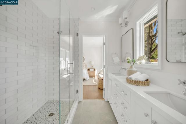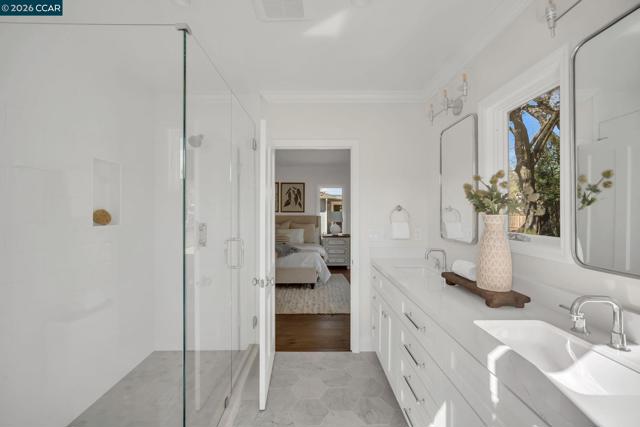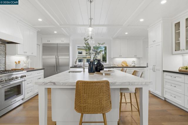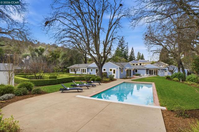 This exceptionally, newly renovated estate is located on a serene cul-de-sac in the highly sought after Westside Alamo, conveniently located near tree-lined walk and bike paths and commute routes. This nearly 3,500 sf residence boasts 5 generous bedrooms and 4.5 bathrooms. The heart of the home is a spectacular chef's kitchen featuring custom cabinetry, a coffered bead board ceiling, granite countertops, an oversized center island, premium fixtures and pro-series appliances. Wide planked flooring flow throughout while the custom millwork and soaring ceilings create a perfect blend of sophistication and warmth. The open floor plan and beautiful setting make way for abundant natural light. The designer-curated finishes throughout echo modern luxury & effortless living. Moreover, this residence comes with a brand new 3 car garage and offers wonderful flexibilty with an in-law or guest quarters and separate access. Plus, this rare & professionally landscaped property sits on a FLAT 0.66 acre lot offering ample space for an ADU! This resort-like residence is ideal for a staycation and entertainment! The cherry on top is that this address feeds into the acclaimed San Ramon Valley Unified School District!