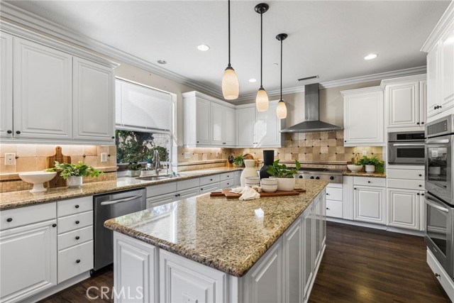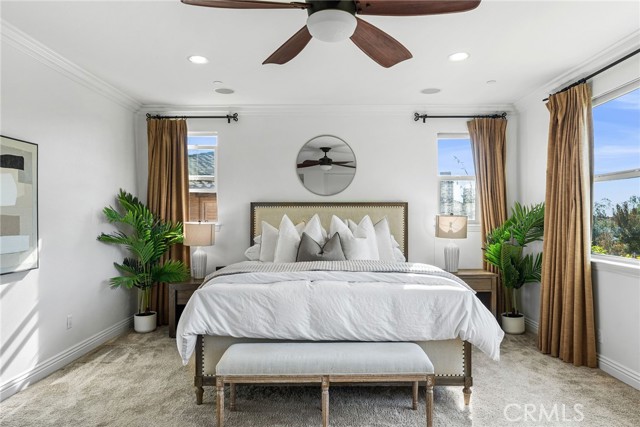 Bright and ready for move-in, this spacious home offers an outstanding move-up opportunity on a cul-de-sac behind the gates of San Juan Capistrano’s prestigious Belle Cliff at Pacifica. Crafted by award-winning John Laing Homes in 2007, the expansive two-story design offers style, practicality and flexibility in approximately 3,912 square feet. Five bedrooms and 4.5 baths include a main-level ensuite ideal for a home office, guests, a nanny or in-laws. Upstairs, a versatile loft makes a great office, play space or homework area, two bedrooms open to a covered balcony, and two secondary bedrooms share a bath. Main living areas are grand in scale, with a formal entry opening to a gallery-style hall, and arched passageways leading to formal living and dining rooms that access a private side patio with fountain. Backyard views enrich a generously proportioned family room with an elegant fireplace and a custom built-in media center with surround-sound. The family room flows through a light-filled breakfast nook to a high-end chef’s kitchen with island, white cabinetry, granite countertops and full backsplash. A walk-in pantry is featured, and top-tier stainless-steel appliances include a built-in refrigerator and six-burner cooktop. Homeowners will appreciate the privacy of an inviting primary suite with walk-in closet, separate vanities with vessel sinks, a soaking tub, and a separate shower with built-in seats. Enviable amenities capture the eye, including crown molding, custom window treatments, upgraded lighting fixtures, a dramatic three-tiered staircase with elegant railing, fresh paint, woodgrain flooring and plush carpet. An attached garage accommodates three cars, and the laundry room, complete with a sink, counter space and cabinetry, is located upstairs near the bedrooms. Embraced by mature landscaping and beautiful shade trees, the pool-sized backyard is perfect for entertaining, playtime and pets. Enjoy a custom built-in BBQ bar, a custom open-air fireplace and a large lawn. South Orange County’s coveted coastal lifestyle is enriched with access to Club Pacifica, a private, resort-style destination for residents of Pacifica that hosts a heated lap pool, spa, cabanas, fitness center, and an outdoor lounge with fireplace and barbecues. Dana Point Harbor is only three miles from home, and highly-rated public and private schools are nearby, including St. Margaret’s, Capistrano Valley Christian, and JSerra.