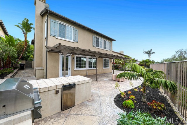 Mother-In-Law or Guest Quarters make this exquisite Talega property unique. The desirable, Miraleste Plan 3 has a tasteful interior, and features soaring ceilings with a dramatic staircase, an abundance of windows for natural light, formal living room, 4 spacious bedrooms plus loft, 3 1/2 bathrooms, new luxury vinyl flooring on stairs and bedrooms, and travertine flooring downstairs in this open floor plan. The Guest Wing is situated on the main level, complete with a bedroom, walk-in closet, 3/4 bathroom and sitting room. The bright white kitchen adjoins the family room with fireplace and dinette, including a large center island with breakfast bar, stainless appliances, double ovens and walk in pantry. The upper level has 3 additional bedrooms and a loft that can be used as a 5th bedroom, home office or den. The master suite enjoys peek ocean views and an ensuite bathroom with soaking tub, separate shower stall, dual vanities, and two walk-in closets. An inside laundry room is conveniently located on the main level with built-in sink and plenty of cabinets. The exterior is enhanced with a gated courtyard entry, an oversized wrap around backyard with covered patio, coastal breezes, built in BBQ, mature fruit trees and a huge 2nd floor covered balcony accessed by two of the secondary bedrooms. Did we mention Solar! The Solar is owned! Talega amenities include 3 recreational pools, a heated lap pool, many parks, hiking trails, Freddie Couples Golf course, sports fields, tennis courts, Talega events for all age groups including concerts in the park, award winning K-8 Vista Del Mar school and the Talega Village shopping center. Located not far from San Clemente's beaches with world class surf, charming downtown shops, restaurants and the Outlet Mall.
