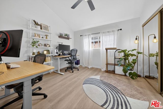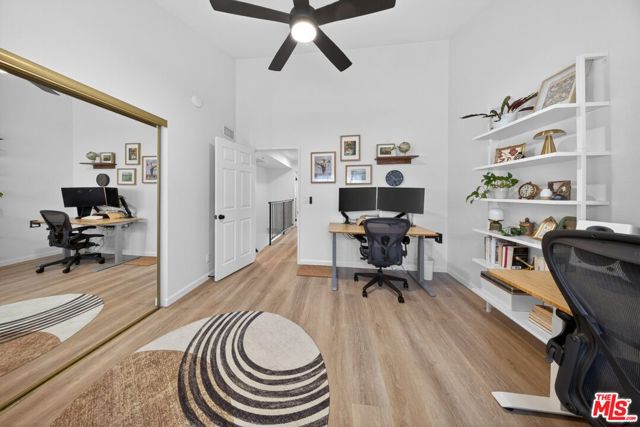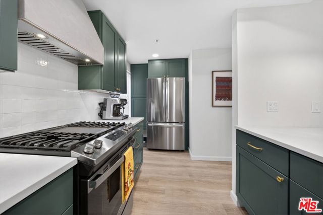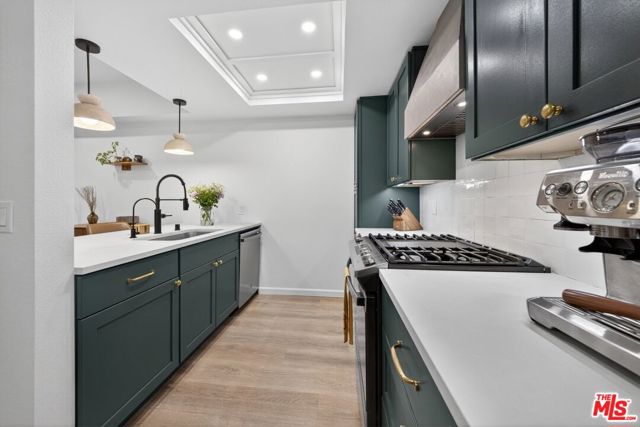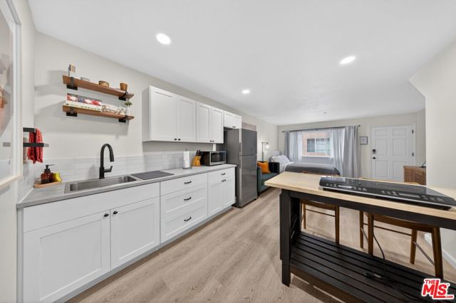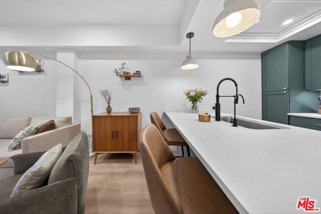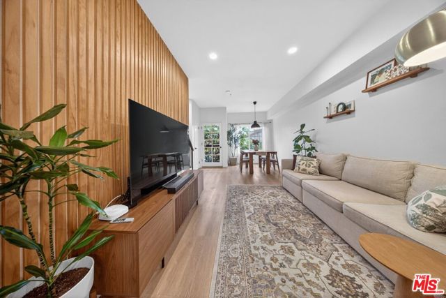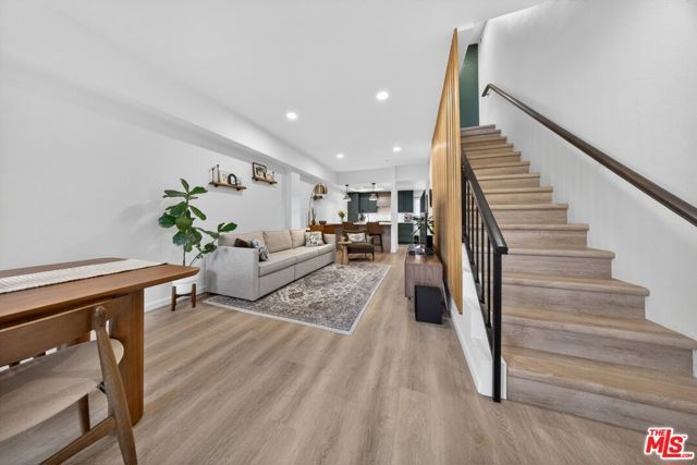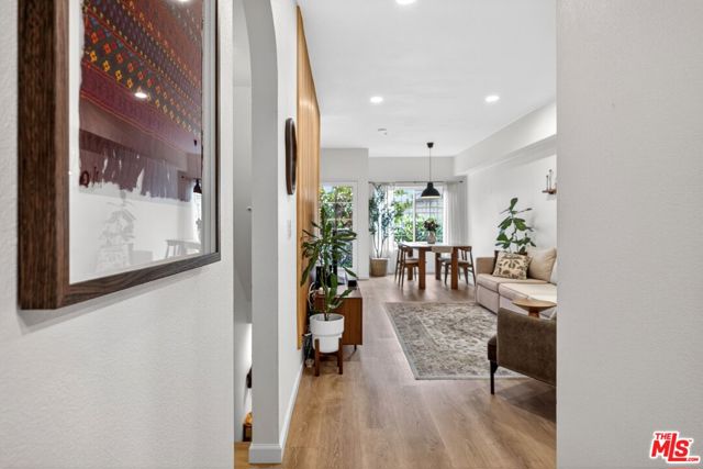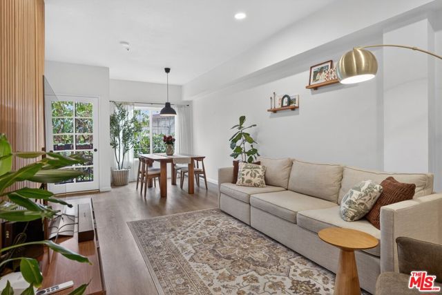 Welcome to 147 Acacia Ave, Unit 118A bright and stylish tri-level condo in the heart of Glendale, showcasing a clean neutral palette with subtle Dutch Bohemian influences that create a modern yet inviting atmosphere. A standout feature of this residence is the first-floor studio suite complete with a private entrance, kitchenette, and full bathroom. This flexible space is ideal for guests, a private office, multi-generational living, or potential supplemental income. The main living level features an open-concept layout with the kitchen as the focal point. Enjoy ample cabinetry, elegant Rejuvenation brass finishes, and updated appliances including an LG French Door refrigerator, GE range, GE dishwasher, and a discreetly tucked-away stackable GE washer and dryer. The living and dining areas flow seamlessly and open to a private balcony perfect for relaxing or entertaining. Upstairs, the primary suite offers generous closet space and a fully remodeled en-suite bathroom with spa-inspired finishes. The secondary bedroom is thoughtfully positioned for privacy and is complemented by another beautifully updated bathroom. Extensive upgrades include new plumbing throughout, enhanced electrical, luxury vinyl plank flooring, new windows, recessed LED lighting, ceiling fans, and a new AC/heating combination unit. The unit includes two side-by-side assigned parking spaces, guest parking, and a storage area within the gated garage. The secured community features security cameras along with resort-style amenities including a pool and spa. Conveniently located just minutes from The Americana at Brand, Atwater Village, Whole Foods Market, Starbucks, and Hollywood Burbank Airport, this home offers comfort, versatility, and an exceptional Glendale location.
