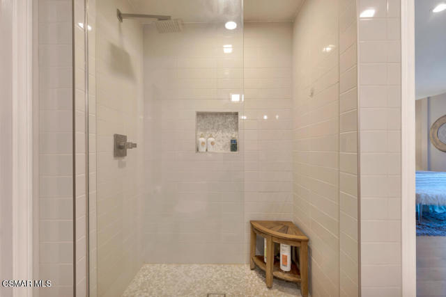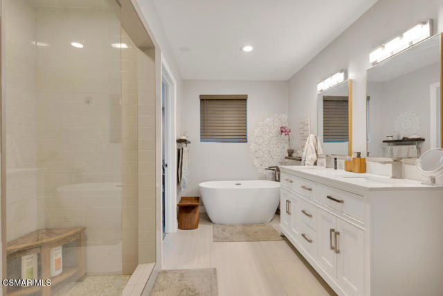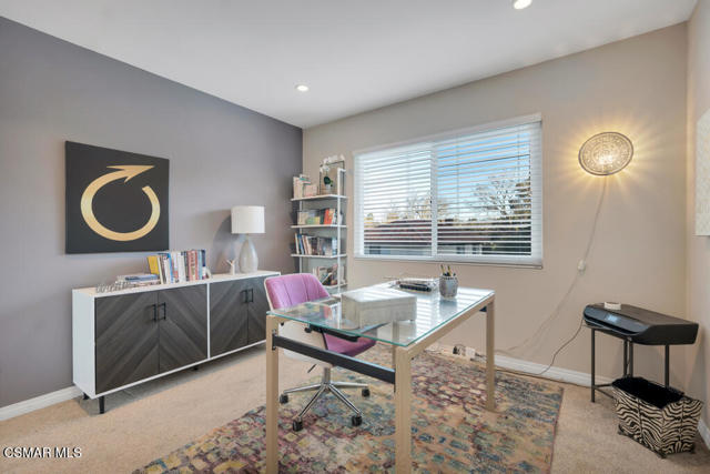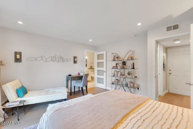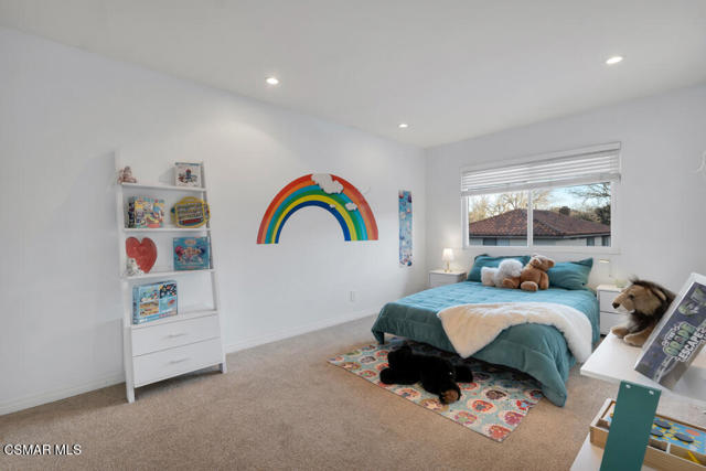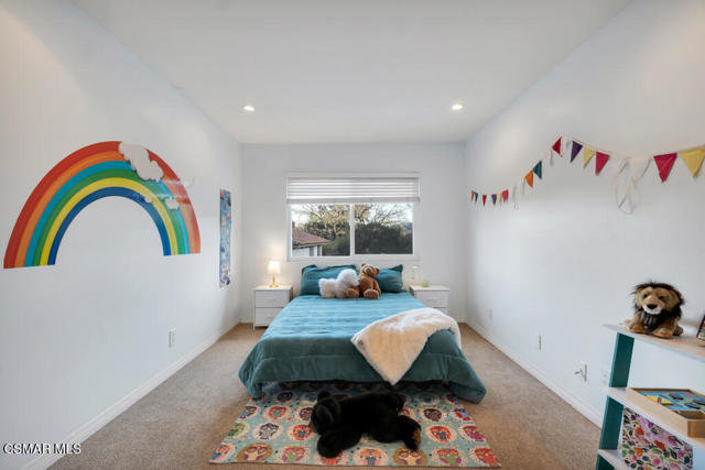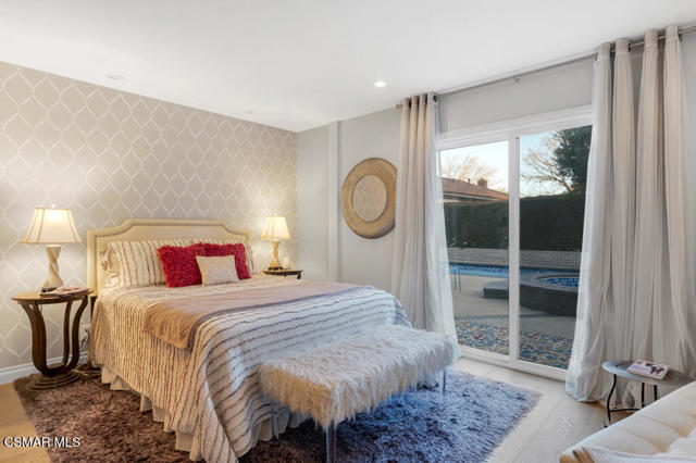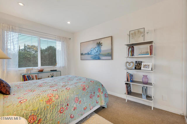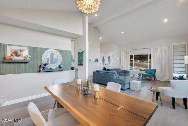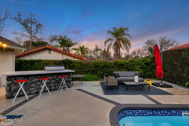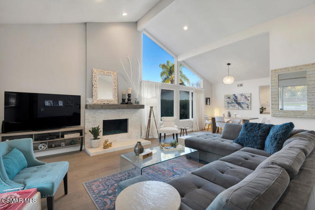 Beautifully updated Village Homes residence in a prime park-front location in Westlake Village. Surrounded by mature trees and greenbelts, with community walking paths and hiking trails beginning just across the street. This home offers the best of indoor-outdoor California living. The desirable layout includes 4 bedrooms and 21/2 baths, highlighted by a first-floor primary suite with recently added full bath and extra large walk-in closet -- a rare and sought-after feature. The kitchen showcases stainless steel appliances, quartz countertops, roll-out shelving, and opens seamlessly to the family room for comfortable everyday living. A formal living room with vaulted ceilings and a fireplace, flowing naturally into an open dining area, ideal for both everyday meals and entertaining. Engineered hardwood flooring enhances the downstairs living areas. The private backyard features a sparkling pool and spa, built-in BBQ and refrigerator with generous patio space -- perfect for relaxed evenings or hosting gatherings. Additional highlights include a 21/2-car garage offering extra storage or workspace flexibility. Residents enjoy access to Village Homes amenities including the community center and pool, award-winning schools, and convenient proximity to Westlake Village shopping and dining.