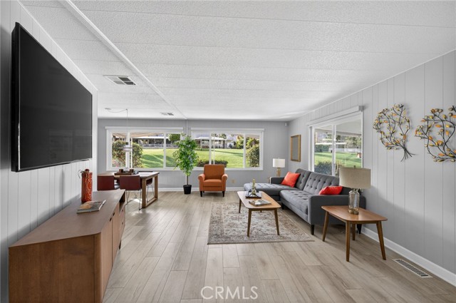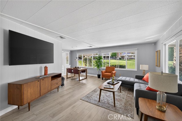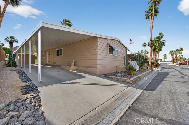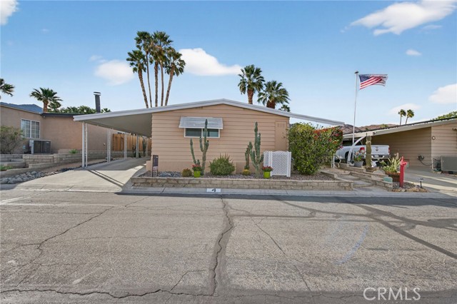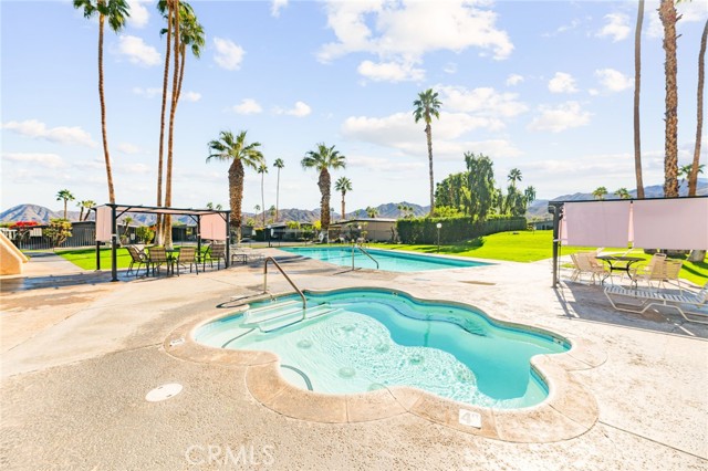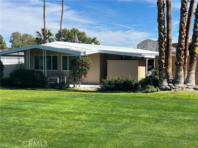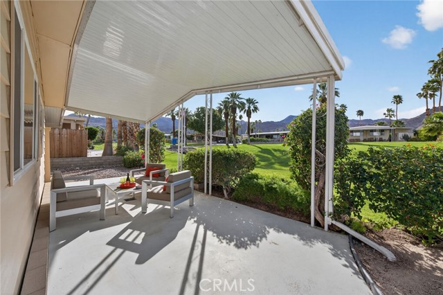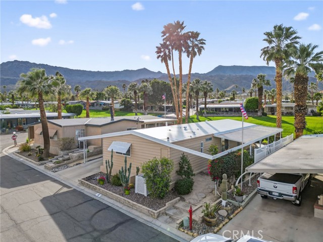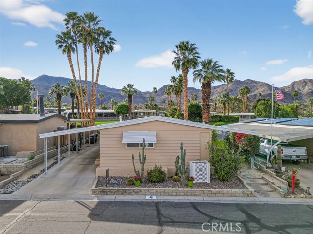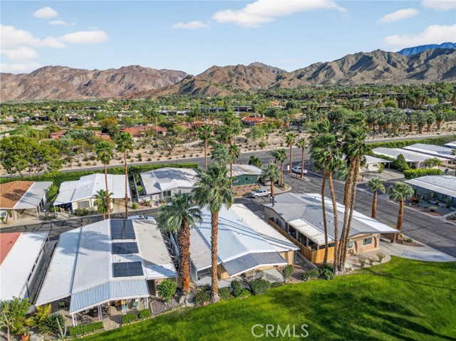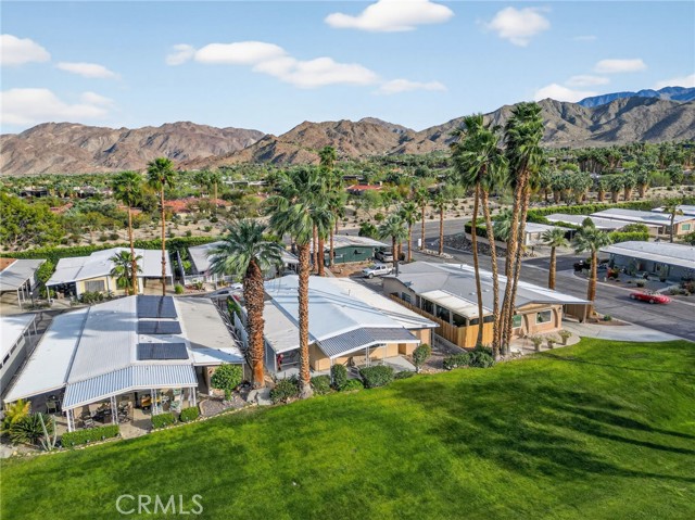 Welcome to this beautiful move-in ready 2 bedroom, 2 bath home offering 1,488 sq. ft. of green belt living in the highly desirable Indian Springs 55+ Mobile Home Park. Perfectly positioned just 2 miles from the iconic El Paseo Shopping District, where you’ll enjoy world-class shopping, dining, and entertainment right at your fingertips. All at a price that can't be beat. Nestled at the base of the mountains with breathtaking views of the Cahuilla Hills this lot sits on a lush greenbelt. The secluded covered lanai creates the perfect desert retreat. Step inside to a spacious air-conditioned living room showcasing updated double pane windows and Smart Wing remote controlled roller shades and new laminate floors. Additional upgrades include new hot water heater and two 70” vizio TV’s. also included are an IKEA queen bed frame(new), IKEA dining room table and four chairs along with a Scandinavian Designs entertainment cabinet. Whether you’re seeking a full-time residence or the perfect seasonal getaway, this home is what you're looking for! Park details: Privately owned, rent-controlled leased land (no land taxes). Subletting allowed after 1 year of residency. Park approval required prior to close of escrow. This is desert living at its finest — stylish, turnkey, and ideally located.