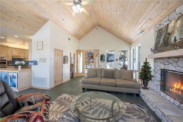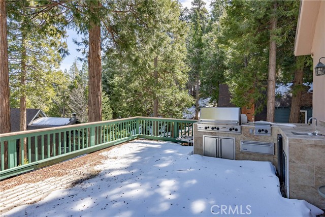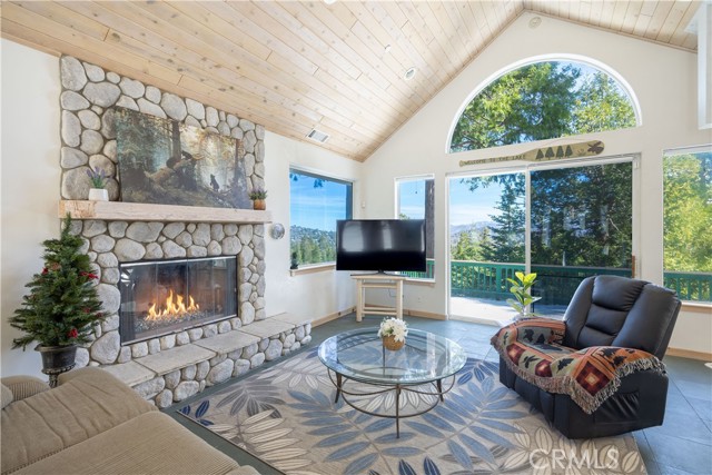Nestled in the serene Lake Arrowhead Woods neighborhood, this stunning home offers the perfect blend of comfort and charm, with stunning mountain views and coveted full lake rights. Situated on a quiet road, this property has been lovingly maintained as a full-time residence since 2004 and is ready to welcome its next chapter. Spanning 2,824 square feet, this 5-bedroom, 3.25-bathroom home comes furnished and is designed for effortless living. A Stiltz lift/elevator makes navigating the three levels a breeze, while a full house Generac generator ensures uninterrupted power. With dual-zoned HVAC systems and fireplaces on every floor, comfort is guaranteed year-round. The heart of the home, the kitchen, has been beautifully updated with a butcher block countertop and top-of-the-line appliances, including an oven, microwave and dishwasher. A second-floor laundry room, conveniently located near the bedrooms, adds to the thoughtful layout. Entertainment and functionality shine in the recreation room, complete with surround sound and a pool table, while the extra-deep garage is a car enthusiast’s dream, featuring 220v for EV charging, second washer and dryer hookups, and a utility sink. Outdoor living spaces abound, with expansive Trex decks on the first and second floors and a concrete lower-level deck. The upper deck boasts a Viking BBQ island with a sink and fridge, perfect for hosting gatherings or enjoying quiet evenings under the stars. Modern upgrades include a Ring alarm system, fire sprinkler system, exterior accent lighting, rain gutters, and a retaining wall and drainage system. The property also features a spa for ultimate relaxation and a majestic valley view, especially captivating in winter, with a slight peek of the lake to complete the picturesque setting. The County-maintained access road ensures hassle-free year-round access. This home truly has it all, style, space, upgrades and views, all in the idyllic setting of Lake Arrowhead. Don’t miss your chance to make it your own!