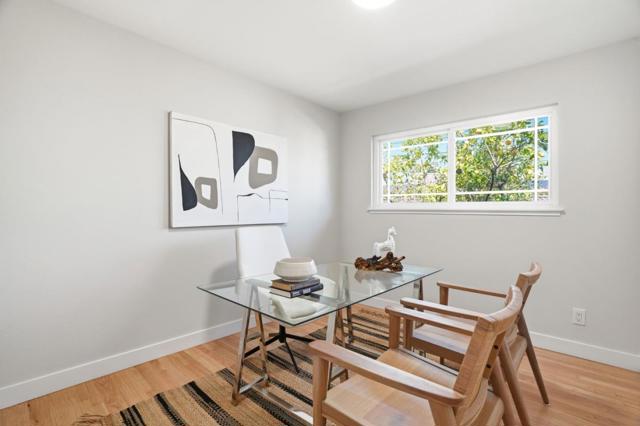 Lovingly maintained by its current owner for nearly two decades this move-in ready and beautifully improved, this spacious Birdland home offers two ensuites one on each level ideal for multi-generational living and privacy. The upstairs ensuite might be the most expansive ensuite you've ever seen in Sunnyvale, directly above the garage, also offering a walk-in closet and updated dual-sink bathroom. Just a short walk to Apple Campus, Raynor Park, and 10/10-rated Laurelwood Elementary, the home features a refinished 2-car garage with epoxy flooring and a generous living area with refinished solid oak hardwoods, in-ceiling lighting, central HVAC, Andersen windows, and crown moulding. The modern kitchen showcases Taj Mahal countertops, new stainless appliances, gas range with a powerful 1,200cfm range hood for serious cooking. The main level includes three bedrooms and two baths, including a marble-tiled ensuite, with sliders opening to a large backyard patio & powered outbuilding ideal for a future office or ADU. Lovingly maintained for nearly 20 years on a nearly 7,000sf lot, this home offers prime access to major tech campuses, commute routes, & upscale dining at Cupertino Village. This is an exceptional opportunity in one of Sunnyvale's most desirable sought after neighborhoods.