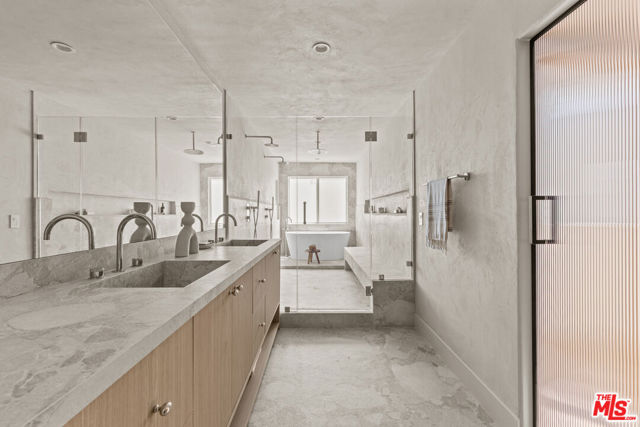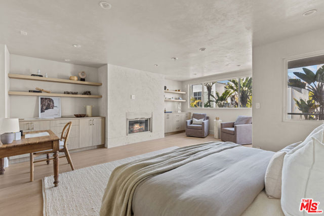 Located in the coveted Silver Strand pocket of Marina Del Rey, just steps from the sand sits this fully gutted and exquisitely remodeled townhouse showcasing exceptional craftsmanship and curated designer finishes throughout. The light-filled living room is anchored by a striking book-matched Antolini Blue Fusion stone fireplace with custom floating shelving and cabinetry, while the chef's kitchen features Taj Mahal stone surfaces, a pot filler, integrated island mini fridge and custom designer chandeliers. Walls throughout are hand-finished in Roman Clay with spa-inspired bathrooms elevated by micro-cement and premium stone selections. The powder room highlights a hand-chiseled travertine sink with bespoke accents, while the junior suite and third bath feature refined stonework and custom oak vanities. The primary suite offers a serene retreat with a custom Travertino Bianco fireplace, his-and-hers oak closets, and a luxurious Beige Creppo stone bath complete with dual vanities, rainfall shower and soaking tub. Additional bedrooms include custom fireplaces, built-ins and walk-in storage. The home is outfitted with brand-new Milgard windows, custom oak doors, reeded glass accents, polished nickel Phylrich fixtures, a fully integrated smart home system and a rare four-car garage with epoxy flooring. An exceptional coastal residence blending sophisticated design, modern technology and an unbeatable location just moments from the beach.