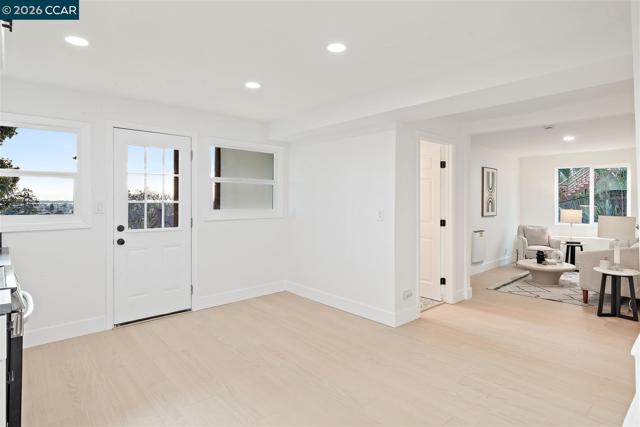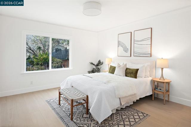 STUNNING Home with an ADDITIONAL LOT in Oakland's Millsmont Neighborhood! This BEAUTY features rich laminate floors, double pane windows, fresh paint, updated fixtures, and so much more! Marvel at the abundance of charm and natural light upon entering. Living room flows seamlessly with the dining room and offers outside access to Spectacular Views of San Francisco Bay! Kitchen boasts new stainless steel appliances, gorgeous Soapstone counter tops, slim shaker cabinets and a tiled backsplash! Bathrooms have been tastefully renovated with new vanities, mirrors, tiled floors and walls. 3 bedrooms on the main level until you venture downstairs to the Finished Basement where 2 more await. Kitchen has been renovated with white shaker cabinetry, warm quartz counter tops and new stainless steel appliances. Additional perks include a new HVAC system, fresh landscaping, and a possible ADU! Close proximity to parks, schools, restaurants, and more! This gem is truly a MUST-SEE and cannot be missed.