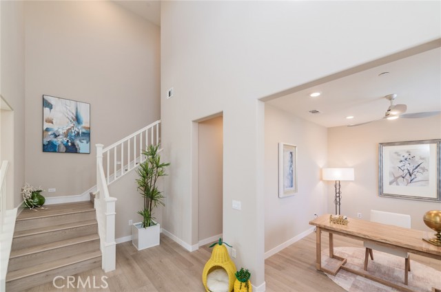 Great VIEW Home! SUNSET View! Location! Location! Looking for a view home in the award-winning community of Rancho Mission Viejo? Stunning Sunset View and a corner Lot. Welcome Home to this highly upgraded Smart Home. This Single-Family Home offers 2018sqft, 3 bedrooms plus a bonus room as office, 3 1/2 baths, with one bedroom with full bath on the first floor. From the moment you step into the wide entry and see the wonderful natural light showcasing NEW Luxury Vinyl Plank floors that continue through the downstairs and upstairs and all bedroom, new paint throughout whole house. you'll know this house is the one! Convenient Office/Den to the left of the entry is the perfect work from home space, play room or gym. To the right, the White Shaker Kitchen with Marble veined Quartz Countertops and Solid slab backsplash and stainless steel appliances opens to the generous dining space. The spacious living area is perfect for entertaining, with large windows that fill the space with natural light and offer breathtaking views. The primary suite is a true retreat, complete with a luxurious en-suite bathroom and a walk-in closet. Each bedroom has its own private bathroom, providing comfort and convenience for family and guests alike. There are community amenities for all from breathtaking resort-style pools and spas, Esencia school K-8, community farms, fitness centers, guest house, putting green, bocce ball courts, tennis and pickleball courts, playgrounds, coffee shop, fire pits, an arcade and so much more!