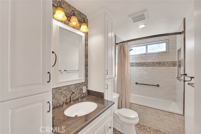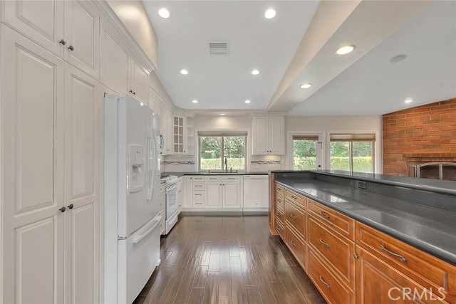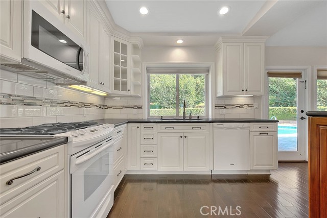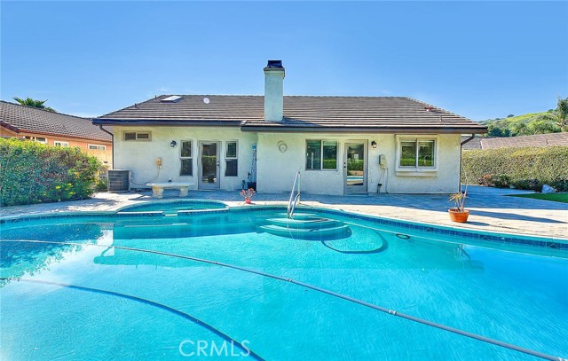 Check out this highly upgraded, single story, pool/spa home. 3 bedrooms and 1.75 baths. Park-like grounds with mature trees, grass and drought tolerant plants. Private backyard is perfect for entertaining and relaxing. Extremely will maintained. Completely remodeled kitchen has custom cabinetry with lots of built-in sliders, mosaic tile and storage galore! Super long counters are great for large gatherings, potlucks and holiday celebrations! Bathrooms have both been remodeled with modern cabinetry, upgraded fixtures and lovely mosaic tile. Guest bath has a full tub and shower. Primary bedroom has a huge walk-in closet, lots of upgraded vanity cabinetry and a walk-in shower. Recessed lighting and double pane windows throughout. Engineered hard wood floors in kitchen living areas and halls. Tile flooring in baths and laundry area. Kitchen is open to the family room and dining area. Lots of natural light and vaulted ceilings create an open and airy environment. Breathtaking views of surrounding hills and trees on back Hills. Brick fireplace in family room is a nice cozy feature! Seamless rain gutters installed less than 2 years ago. Side yard is big enough for RV parking...front hardscape and yard would need to be modified for access. 3rd bedroom is currently setup for an office (closet doors were removed by previous owner). Refrigerator, washer and dryer included. Listing Agent related to Seller.