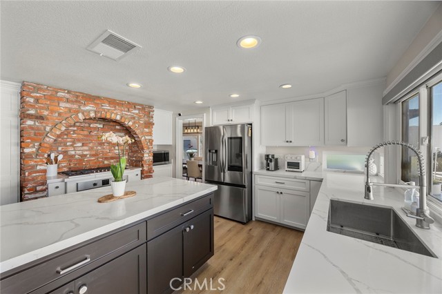 Step into luxury and comfort in the prestigious, 24-hour guard-gated community of Green River. This isn’t just a house; it’s a beautifully upgraded sanctuary designed for modern living and endless sunshine! The airy, open floorplan and soaring vaulted ceilings keep the home bathed in natural light. The home glows with gorgeous newer luxury vinyl flooring. Chef’s Paradise: A recently remodeled expansive kitchen featuring sleek quartz countertops and a massive social island with a built-in wine fridge. High-end stainless steel appliances are perfectly complemented by a unique interior brick architectural feature above the range. The staircase has been reimagined and catwalk widened to create a sense of grand, open space between levels. Main Level: Includes a convenient bedroom and full bathroom. Upper Level: Home to three additional oversized bedrooms, including a palatial primary suite behind elegant French doors. Resort-Style Living Every Day For a low monthly HOA of just $232, you aren't just buying a home—you’re joining a vibrant community! Enjoy access to: Recreation: Olympic-sized pool, kids' pool, jacuzzi, sauna, and a full gym with locker rooms. Sports: Tennis, basketball, and indoor racquetball courts. Community Fun: Movie nights with popcorn, ice cream socials, holiday parties, and ping-pong tournaments at the grand clubhouse. Outdoor Perks: Picnic grounds, BBQ areas, and a dedicated dog park for your furry friends. Nestled right next to the Green River Golf Course, you’ll enjoy breathtaking views of Chino Hills State Park. Plus, with lightning-fast access to the 91, 241, and 55 freeways, your commute to Orange County or a weekend trip to the beach is a total breeze.