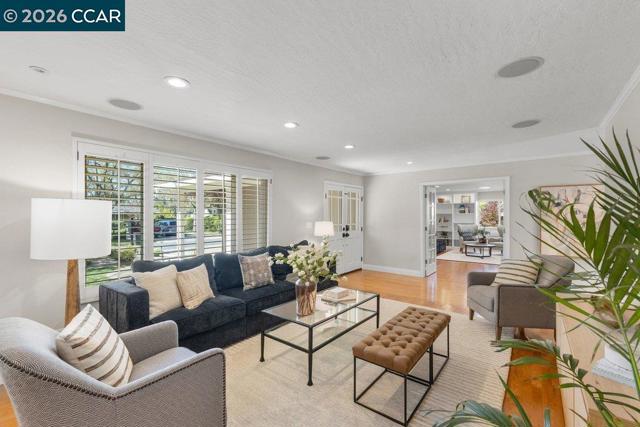 Just a short walk to town! This charming single-story home is positioned on a spacious .46-acre lot along a quiet country lane. Ideally located within walking distance to downtown Danville and the highly rated Vista Grande School, this property offers the perfect blend of charm, comfort, and convenience. The home features four bedrooms, two bathrooms, a welcoming living and dining area, all within approximately 2,331 square feet of thoughtfully designed living space. The cozy living room with adjoining dining area is ideal for both everyday living and entertaining. The large, updated kitchen overlooks the backyard and pool and offers a spacious dining area, an oversized center island with seating, and a fireplace—creating a warm and inviting heart of the home. Currently used as a den, the fourth bedroom features built ins. The backyard is a serene retreat, offering peaceful views of open space, mature trees, and exceptional privacy. Entertain or unwind by the pool and spa while enjoying the tranquil setting. An attached two-car garage completes the property. With ample space to play, relax, or expand, this special home offers a wonderful opportunity to enjoy the best of Danville living.