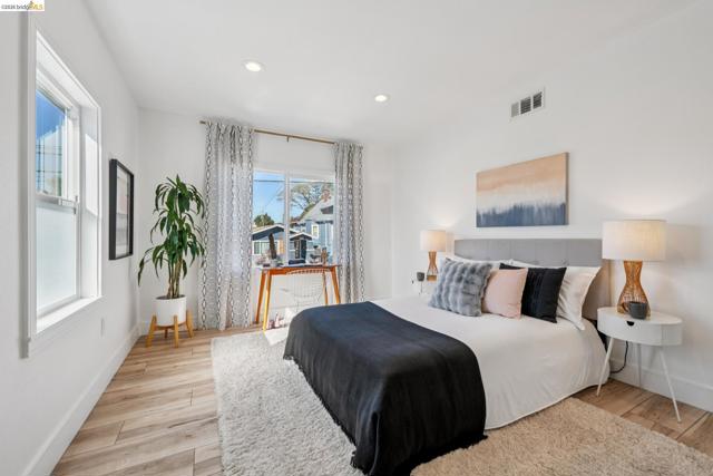 Experience the perfect blend of modern updates and functional design in this sun-drenched South Berkeley home. The open-concept main level features a seamless flow between the living and dining areas and a beautifully updated kitchen, which shines with stone countertops, stainless steel appliances, and island seating. This residence offers three spacious bedrooms and two full bathrooms, including a primary suite with an en-suite bath and modern walk-in shower. A versatile and spacious lower-level family room provides excellent indoor-outdoor connectivity, leading directly to a large, private backyard oasis. This landscaped retreat features mature fruit trees, raised planter beds and ample space for both lounging and al fresco dining. Significant system upgrades offer peace of mind, including dual-pane windows, LED lighting, central heating, and a compliant sewer lateral. An attached garage provides convenience, and the large backyard offers intriguing development potential (buyer to verify). Located less than a half mile to Ashby BART and moments away from local cafes, parks, and amenities, this move-in-ready gem represents easy Berkeley living. 89 Walkscore and 97 Bikescore! BESO/HES Score 6