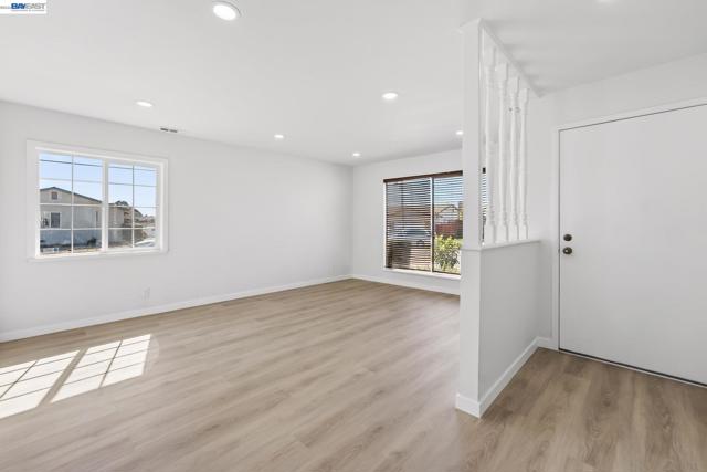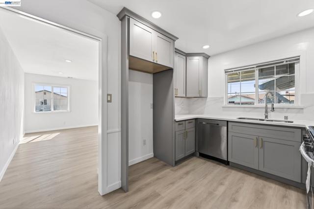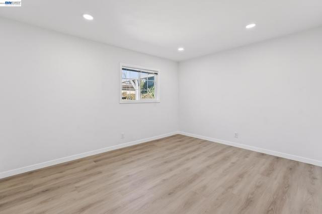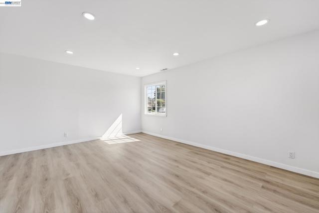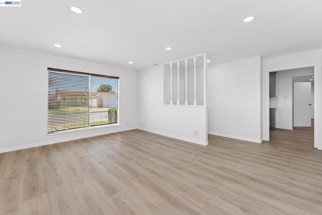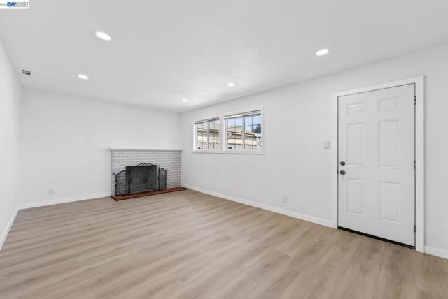 Discover 15524 Montreal St, a stunningly updated 1,419 sq ft rancher built in 1959 in the heart of San Leandro. This 3-bedroom, 2-bathroom home perfectly balances mid-century character with sleek, modern upgrades. Step inside to an open living area featuring wide-plank flooring, recessed lighting, and crisp white walls that enhance the natural light. The chef-inspired kitchen is a showstopper, boasting grey shaker cabinetry with gold hardware, white marble-style counters, and premium stainless steel appliances. Relax in the separate family room, centered by a contemporary painted brick fireplace. Both bathrooms have been fully renovated with designer finishes, including marble-patterned surrounds, new vanities with matte black fixtures, and a primary bath with a light-up LED mirror. The spacious bedrooms offer clean lines and ample storage. Outside, the property features a two-car garage and a generous backyard with a large concrete patio, perfect for entertaining, alongside a level lawn area and a storage shed. This move-in-ready gem offers the ideal blend of style and comfort!
