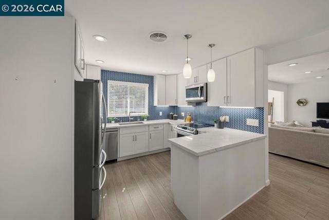 Welcome to 1531 Garcez Dr in Concord. This home features an updated kitchen and refreshed bathrooms, along with engineered wood flooring throughout most of the interior, creating a cohesive and modern feel. The functional layout offers comfortable living spaces for everyday living and entertaining. Step outside to a large backyard with plenty of room to design your own outdoor retreat. The rear portion offers a blank canvas—ideal for adding a garden, patio, play area, or personalized oasis to fit your vision. A wonderful opportunity to make this property your own!