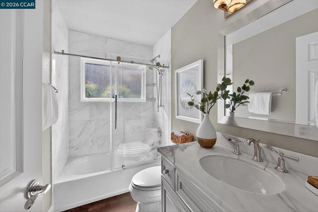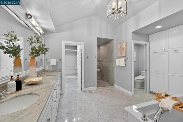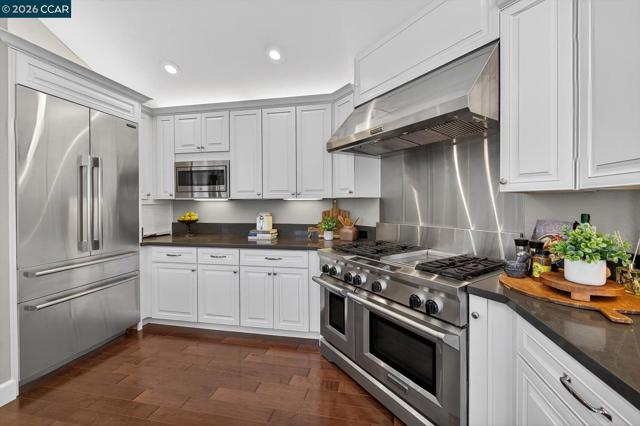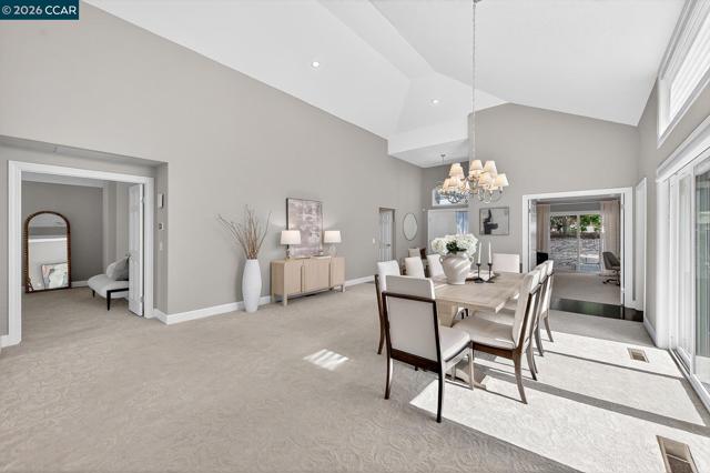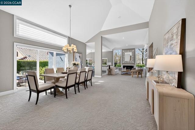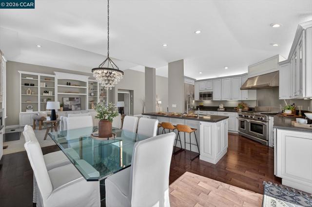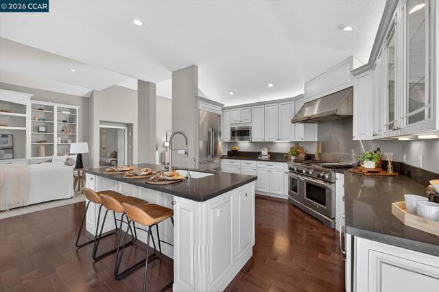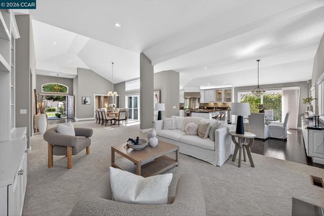 Welcome to an exceptional single-story residence ideally situated on the fairway of the Lakes Golf Course, inside the main gate of the prestigious Blackhawk Country Club. This beautifully appointed 3-bedroom, 2.5-bath home offers an elegant open floor plan designed for both comfortable living and effortless entertaining. The inviting Great Room features soaring vaulted ceilings, a cozy gas fireplace, and a custom built-in wall of shelving and bookcases with integrated storage. A formal dining room provides the perfect setting for memorable gatherings. The gourmet kitchen is truly a dream for any culinary enthusiast, showcasing a commercial-grade gas cooktop with double ovens, premium built-in stainless steel appliances, a French-style stainless refrigerator, granite countertops, and rich hardwood flooring. The spacious primary suite is a private retreat, complete with vaulted ceilings, custom walk-in closet organizers, and sliding glass doors that open to the outdoor patio. The luxurious primary bath features stone flooring, dual vanities, a relaxing soaking tub, and a separate stall shower. Enjoy tranquil golf course views and the security of one of Danville’s most sought-after gated communities.