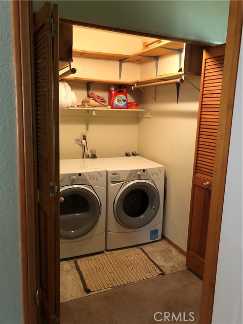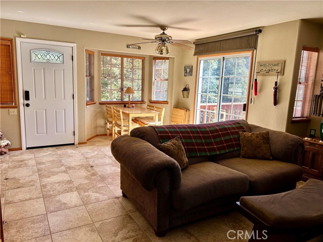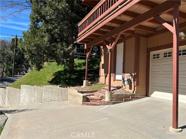 Turnkey Furnished Mountain Retreat – Walk to Lake Gregory! Move right into this charming 2-bedroom Crestline home set on a rare 9,600 sq. ft. usable lot with easy-access driveway, attached 1-car garage, and ample parking—a true convenience in mountain living. Brand-new roof (Jan 2026), HVAC system, and dual-pane windows provide comfort and efficiency year-round. The main level features tile flooring, a cozy living room with a fireplace, a half bathroom, a spacious kitchen with abundant cabinets, and access to a porch with beautiful mountain views. Upstairs offers two bedrooms, a full bath, laundry room, and a private balcony off the primary bedroom enjoying peaceful forest views. Located within walking distance to Lake Gregory for fishing, kayaking, paddleboarding, swimming, hiking trails, and summer water park fun. Positioned on a snow-plow priority road for reliable winter access. Sold fully furnished and move-in ready. Perfect as a full-time home, weekend getaway, or vacation rental investment. Affordable mountain living just a short drive from Los Angeles, Orange County, and San Diego.