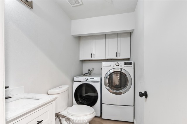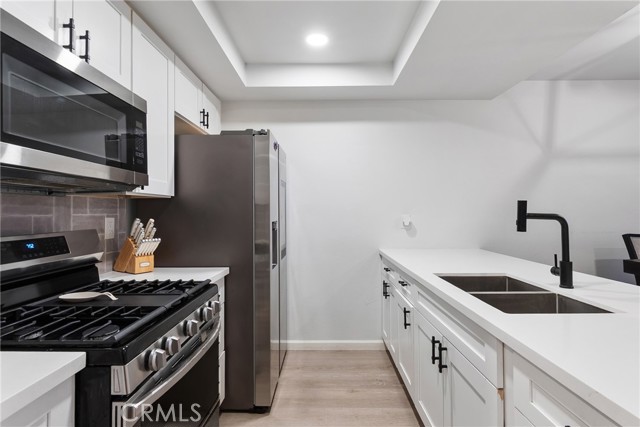 Welcome to this beautifully renovated two-bedroom, two-bath townhouse in the city of Compton. As you enter, you’re greeted by elegant flooring, recessed lighting, and a spacious living room that flows into the dining area. The kitchen features stainless steel appliances, white shaker cabinets, and sleek quartz countertops, creating a modern and functional space. The first-floor guest bathroom includes a washer and dryer hookup along with ample cabinet storage. Upstairs, you’ll find two generously sized bedrooms with plenty of closet space and a full bathroom. The home also includes a detached two-car garage. The Forest Park community offers a large swimming pool and controlled access for added comfort and convenience. Situated toward the rear of the complex, this townhouse provides a quiet setting with added privacy.