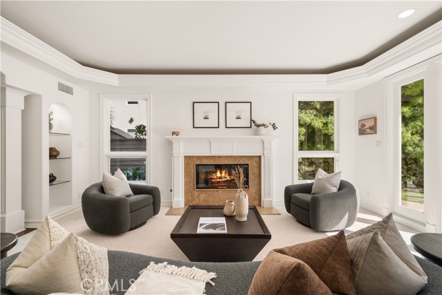 Welcome to exceptionally spacious and comfortable living in this recently updated rare custom estate, ideally situated on a beautiful interior cul-de-sac street in the prestigious Edwards Hill community of Huntington Beach. Approx. 4,270 Sq Ft featuring 4 bedrooms (including main-level bedroom), 4 full baths, bonus room, and upstairs laundry. Grand double-door entry with spiral staircase and coffered ceilings. Formal living and dining rooms with three fireplaces. Gourmet granite kitchen with expansive island, Viking 6-burner cooktop, built-in refrigerator, and open flow to family room and private south-facing backyard on an approx. 9,000 Sq Ft lot. Luxurious primary suite spans the rear of the home with fireplace, sitting area, and spa-style bath with freestanding tub, oversized travertine shower, and custom walk-in closet. Upgrades include black walnut and travertine flooring, granite and marble baths, lightweight concrete second-floor system, finished attic, Life Source whole-house water filtration, and oversized 3-car garage with sink and storage. Close to Huntington Central Park, Huntington Seacliff Elementary School, and a short ride to Huntington Beach Pier and the beach.