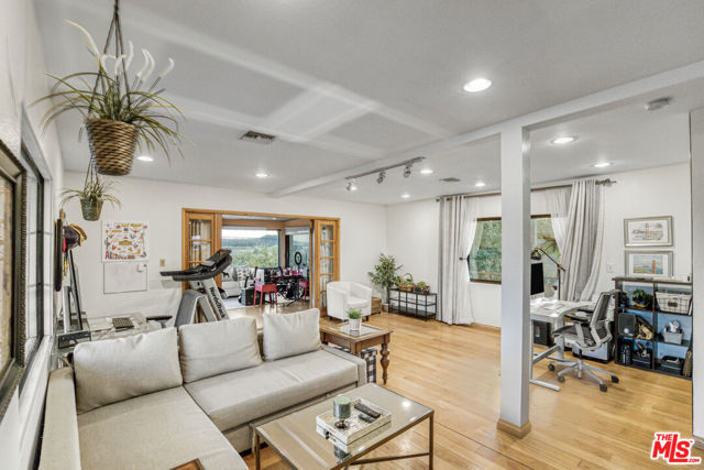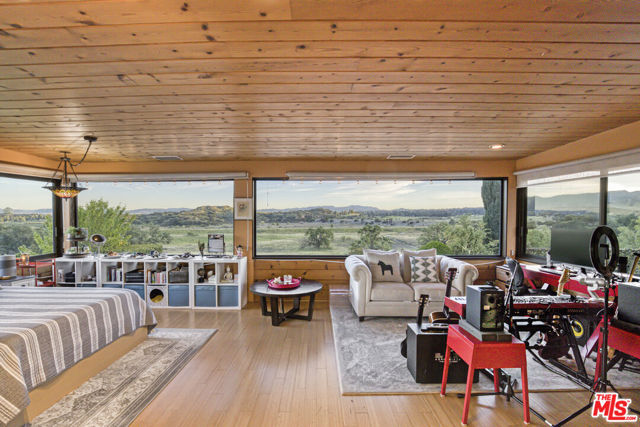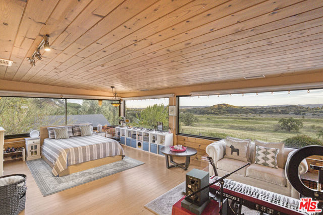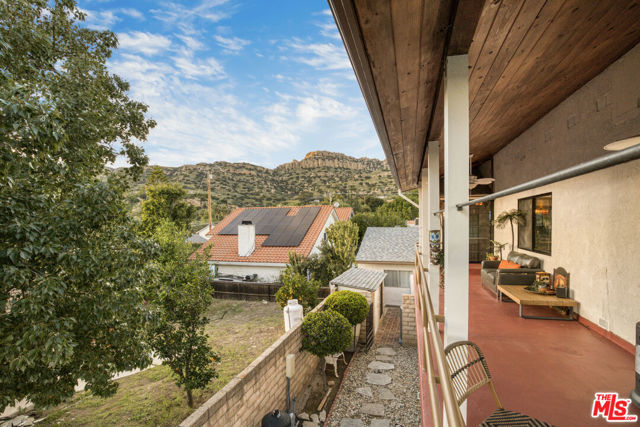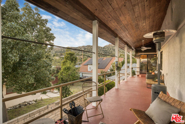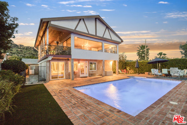 Extraordinary preserve-adjacent view property located on a quiet private street that ends at the Chatsworth Nature Preserve. This expansive property offers 5 bedrooms and 2 bathrooms across a main home and a detached guest house, each with its own private gated entrance. The guest house is currently operating as a successful short-term rental generating attractive supplemental income.The main residence offers approximately 3,300 square feet of living space, including three separate living areas, an upstairs multipurpose room, and a dedicated music studio with oversized windows framing breathtaking sunsets. The second level enjoys sweeping 360-degree views, where nearly every window captures expansive panoramas of the Chatsworth Nature Preserve, a cinematic landscape where numerous motion pictures have been filmed.On the opposite side of the home, enjoy striking views of the iconic Chatsworth red rock formations known as the "Twelve Apostles."The spacious gourmet kitchen showcases dramatic pitched exposed-beam ceilings and flows seamlessly into the dining room with fireplace, creating warmth and architectural character. Expansive balcony areas extend the living experience outdoors, perfectly positioned to take in the surrounding natural beauty.The private pool retreat features a large sparkling pool, outdoor grilling area, and multiple entertaining spaces ideal for relaxing or hosting gatherings. A gated walkway from the pool area provides direct access to the adjacent Chatsworth Nature Preserve and its scenic hiking trails, offering a rare opportunity to step directly from your property into protected open space.A rare opportunity to own a private, view-rich property with income potential, creative space, and direct connection to nature, offering the feel of a secluded retreat while remaining within Los Angeles County.
