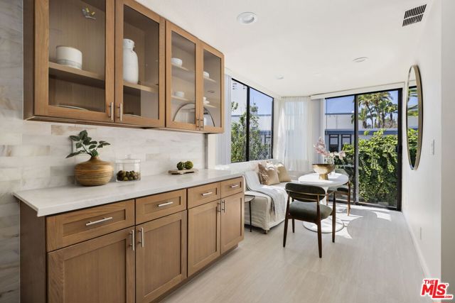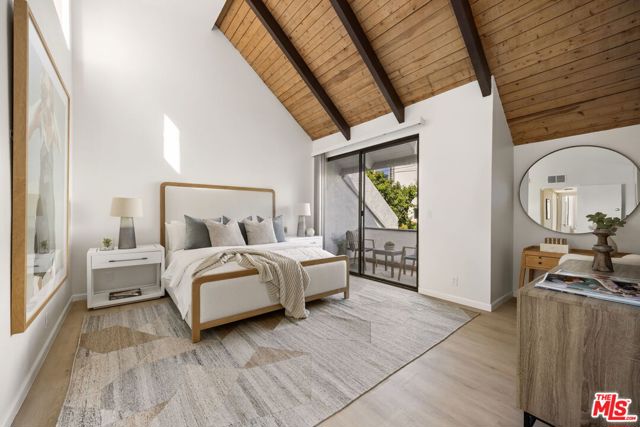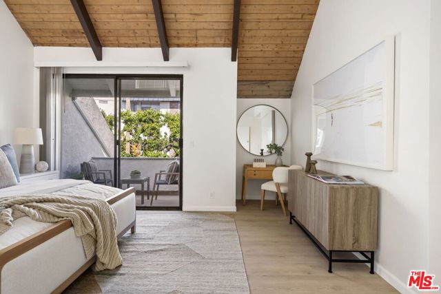 This beautifully renovated 3-bedroom, 2.5 bathroom townhome is nestled right in the heart of prime Westwood. This end unit has a ton of natural light and features a newly updated interior, including kitchen, bathrooms and flooring. The open-concept living area flows seamlessly onto a huge patio, creating a perfect indoor-outdoor living experience. The step-up dining room also opens to the outdoor area for seamless access and outdoor dining. The newly remodeled kitchen features new custom cabinets, new counters and appliances and opens up to a generous eat-in area. The upper level features the luxurious primary suite which boasts dramatic vaulted ceilings, a remodeled bathroom, walk-in closet and lovely balcony. Two additional bedrooms, one with a balcony, offer flexibility for family, guests, or a home office and share a remodeled bathroom. Additional features include a huge lower level bonus room, perfect for a gym or storage or a multitude of other uses. Other amenities include In-unit laundry and direct access to the parking garage for ultimate convenience. This lovely building enjoys a courtyard setting and has a pool to enjoy our LA summers. Just minutes from UCLA, Century City, restaurants and coffee shops, this home is perfectly situated for any buyer
