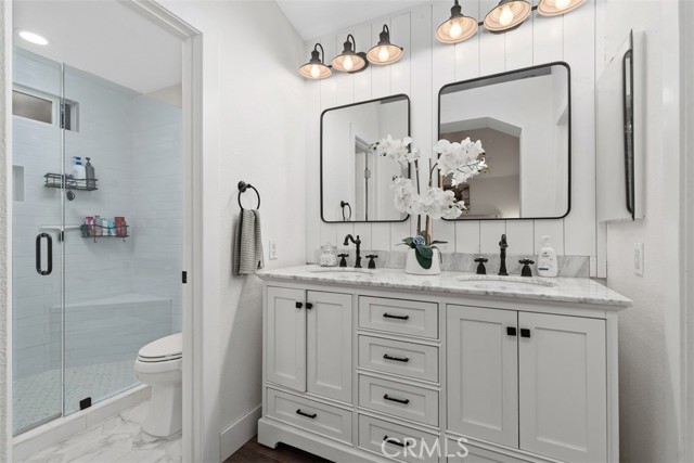Single-Level Turn-Key Robinson Ranch Home! This 3-bedroom, 2-bathroom home features Newer LVP Flooring, Remodeled Kitchen, Recently Repiped, a Remodeled Backyard and more. Enter through double-doors to be greeted by the living room with a fireplace that opens to the kitchen, featuring Newer Quartz Countertops, Newer Backsplash, Newer Stainless Steel Appliances, Newer Range Hood, and Newer Cabinets. The primary bedroom features an upgraded bathroom with quartz countertops, a walk-in shower, and a walk-in closet. The additional two-bedrooms have an upgraded full bathroom in the hall. The Pool-Size Backyard has been Reimagined with almost $100,000 in Upgrades, including: Newer Synthetic Grass, a Fire Pit, Newer Pavers, Newer Patio Cover, and Outdoor Lighting. ADDITIONAL UPGRADES include: Recently Painted Interior and Exterior, Newer Plumbing, Newer Garage Door, Newer OWNED Water Softener, and Newer A/C. This Remodeled home is a MUST see. Experience the best of Robinson Ranch: award-winning schools, premier recreation including pickleball courts to pools, and scenic nature. Enjoy the small-town charm and vibrant culinary scene of nearby Rancho Santa Margarita, all while staying connected to SoCal’s major hubs and famous beaches.