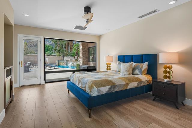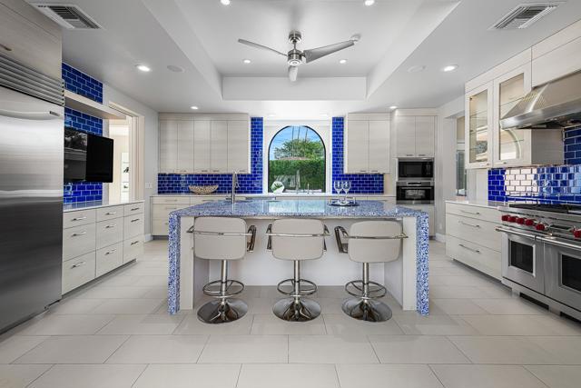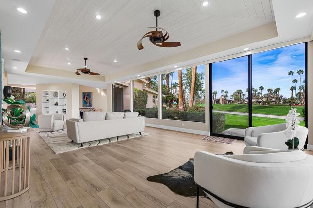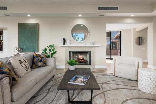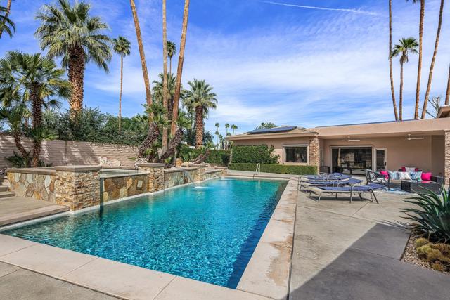 PRICED TO SELL, TURNKEY, and the VIEWS! Originally selected by Thunderbird developer Johnny Dawson for its commanding views and premier position along the 9th fairway on his championship golf course, this William F. Cody residence sits on one of the most exceptional lots at Thunderbird Country Club. Nearly 4,000 sq. ft. of timeless mid-century architecture has been thoughtfully updated with modern finishes, fresh interior and exterior paint, remodeled baths, new doors and hardware, and lighting--bringing a crisp, contemporary feel to Cody's original vision. Original blueprints are included.Designed for seamless indoor-outdoor living, the home captures breathtaking mountain and fairway views from every major room. A dramatic 16-foot entry with an oversized skylight fills the interior with natural light, leading to spacious living and dining areas and an air-conditioned 3-car garage.The chef's kitchen is a centerpiece, featuring a large Vetrazzo waterfall island, custom cabinetry, quartz countertops, and top-tier Wolf and Sub-Zero appliances, including a dual-fuel range, double ovens, steam oven, microwave, pot-filler, wine fridge, and Bosch dishwasher. It opens to a beautifully redesigned courtyard anchored by a 40-foot saltwater pool and spa, outdoor fireplace, and generous entertaining space.Each bedroom is ensuite. The expansive primary suite includes a private office and two walk-in closets with custom cabinetry. An attached guest casita with a private exterior entrance offers ideal separation and flexibility.Additional features include three A/C zones, a high-capacity LG washer/dryer, an air-conditioned 3-car garage with epoxy floors and built-in cabinetry, a hot-water return system, leased solar (56 panels, 3 inverters) for enhanced efficiency. This is a rare opportunity to own a Cody-designed home on a historically significant Dawson-selected lot--where mid-century pedigree meets modern luxury in one of Thunderbird's most coveted settings.