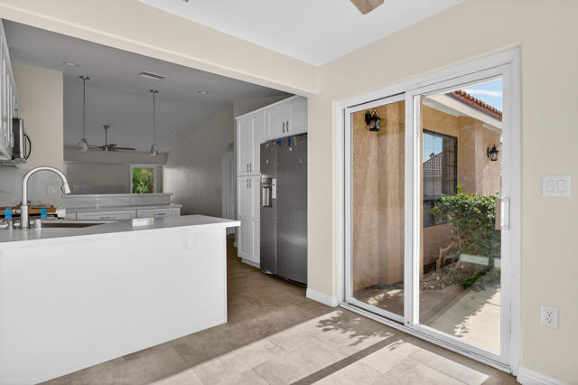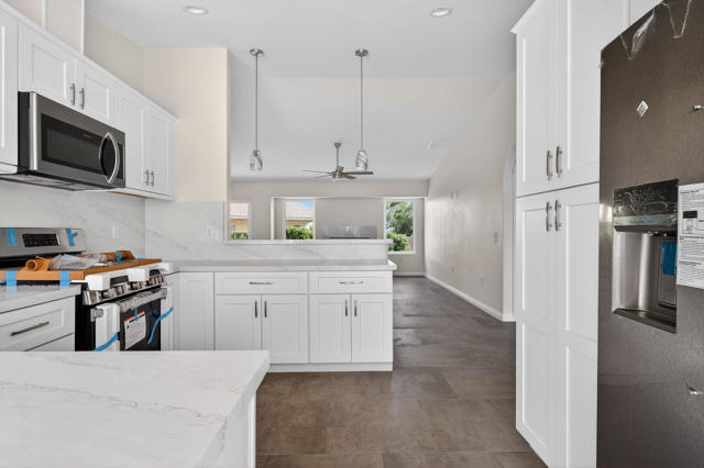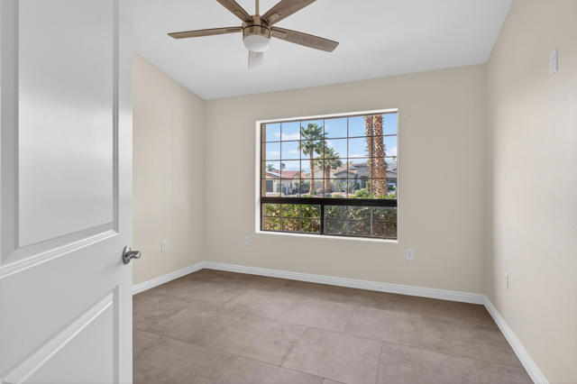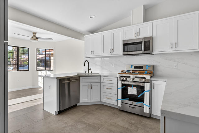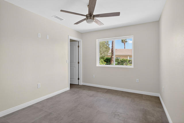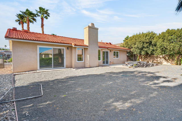 Located in the peaceful Mission Lakes Country Club community, this well-maintained home features all new granite countertops and stainless-steel appliances, including a refrigerator, stove, dishwasher, microwave, and washer/dryer.The flexible floor plan offers two spacious bedrooms, a third bedroom, and a versatile bonus room ideal for a home office or formal dining area. The bright kitchen includes a breakfast nook surrounded by windows with beautiful mountain views.Enjoy outdoor living with a spacious backyard, large concrete patio, and stunning San Jacinto Mountain views, along with a nicely landscaped front yard and additional patio. Conveniently located near shopping, dining, golf, and just a short drive to Palm Springs and El Paseo