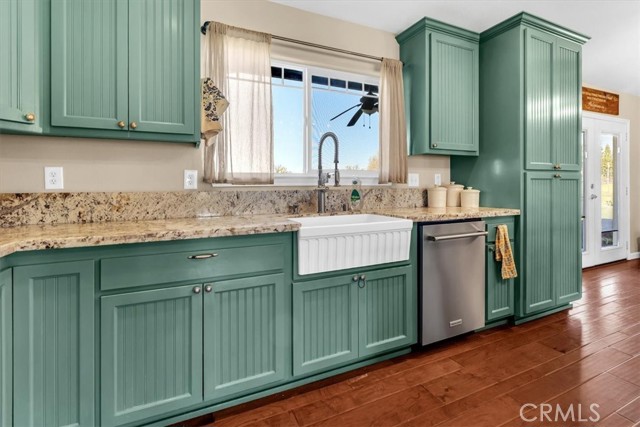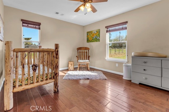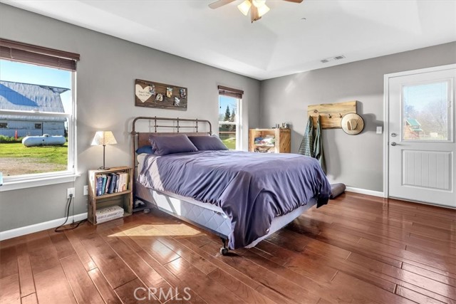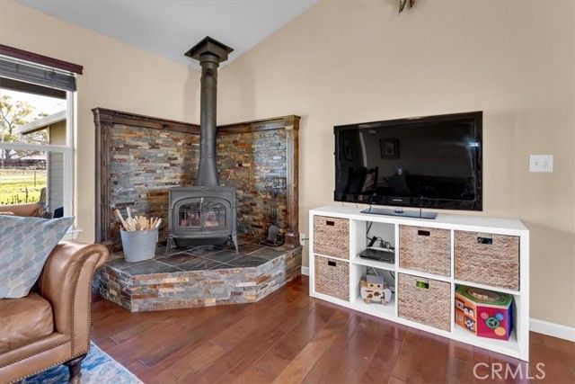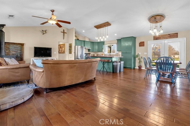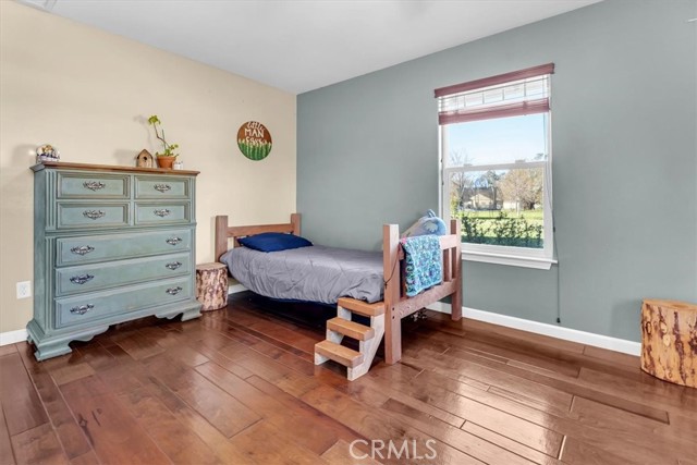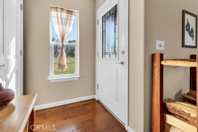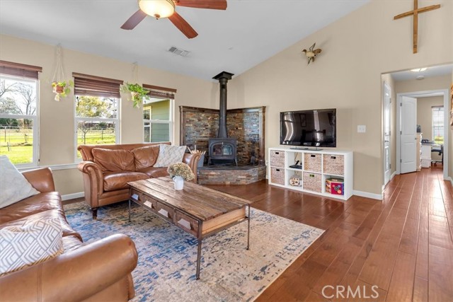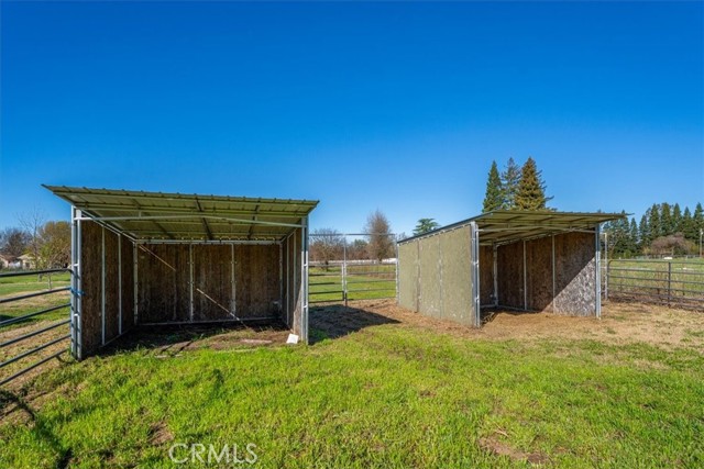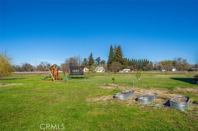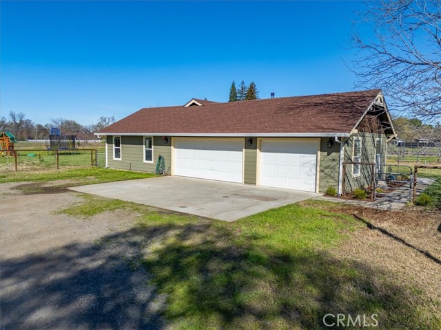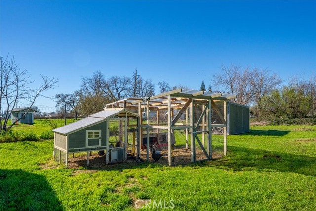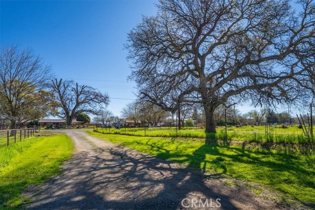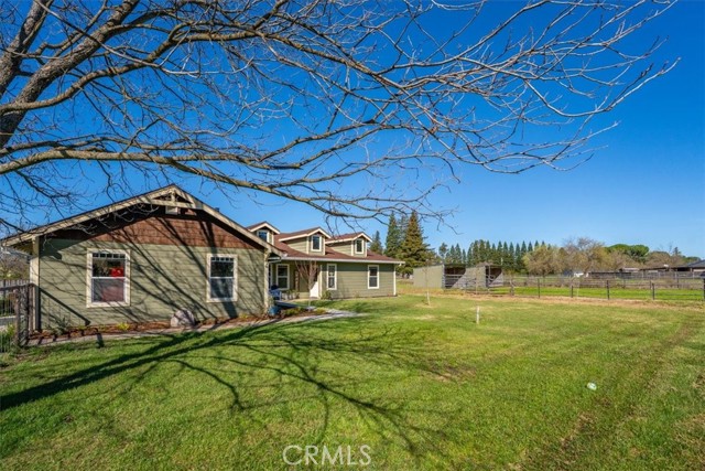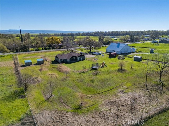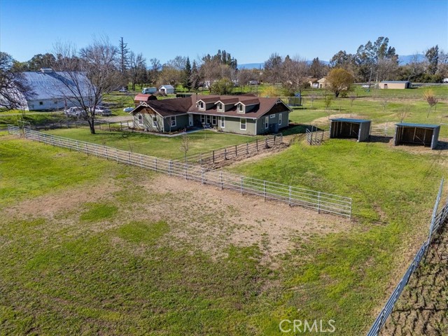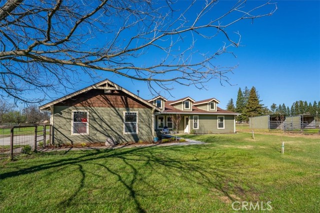 Experience peaceful country living in this charming 3-bedroom, 2-bath ranch-style home offering 1,633 sq ft of thoughtfully designed living space. Situated on 2.19 acres, this property provides privacy, space, and beautiful surroundings among other well-maintained homes of similar quality. The open floor plan creates a warm and inviting atmosphere, highlighted by a spacious great room with vaulted ceilings, abundant windows, and engineered, hand-scraped hardwood floors throughout. Natural light fills the home, enhancing its welcoming feel. The open kitchen is the heart of the home, featuring custom cabinetry, granite countertops, and a large center island bar topped with a walnut butcher block that serves as the centerpiece of country charm. Unique light fixtures throughout the home add character and style. The primary bedroom suite makes a statement with a beautiful tray ceiling, a large walk-in closet, and a luxurious bathroom featuring an incredible walk-in shower with frameless glass door and dual shower heads. Additional highlights include an oversized 3-car garage and a peaceful country setting, perfect for enjoying open space and quiet living. Outside, you'll find a family fruit orchard featuring a variety of mature trees, including apple, peach, pluot, plum, pear, pluerry, mandarin, lemon, pecan, and possibly more, allowing you to enjoy fresh fruit right from your own property. For those dreaming of a small homestead or hobby farm, the property includes a chicken coop, two shelters for horses or 4-H projects, and horse panels that stay with the property. The irrigated pasture includes water rights through the Los Molinos irrigation district. Additional outdoor features include a storage shed, covered front and back patios/porches, and the entire property is fully fenced and cross-fenced to help keep pets and livestock safe and secure. This property offers the perfect blend of modern comfort, country charm, and small-farm potential-a must-see home!