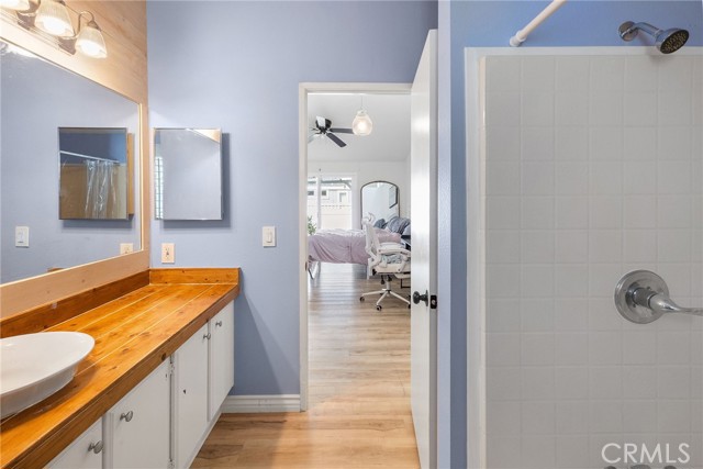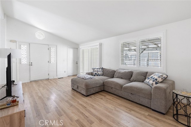 Welcome home to this beautifully maintained 2-bed, 2-bath detached residence nestled in a sought-after Redlands community. The front yard offers charming curb appeal with landscaped greenery, a cement walkway, and tasteful stone accents. With 1,100 sq ft of thoughtfully designed living space, this home offers the perfect blend of comfort, style, and low-maintenance living. Step inside to a bright and airy living room featuring high ceilings and stylish vinyl wood flooring that flows seamlessly throughout the home. The kitchen is both functional and inviting, showcasing crisp white cabinetry. The primary bedroom offers a private retreat with its own en suite bathroom, while the additional bedroom is well-sized for guests, family, or a home office. Enjoy the spacious backyard, complete with vinyl fencing, a mature orange tree, and a long covered patio—ideal for outdoor dining or relaxing evenings. Amenities include a sparkling pool and pickleball court, making it easy to stay active and connected. This is a fantastic opportunity to own a move-in ready home in a desirable location.