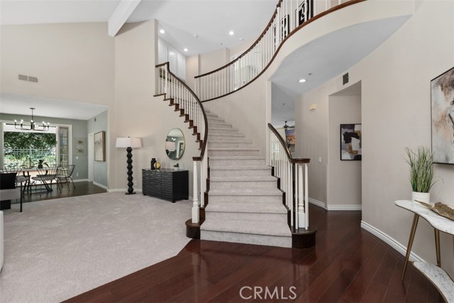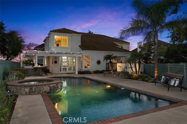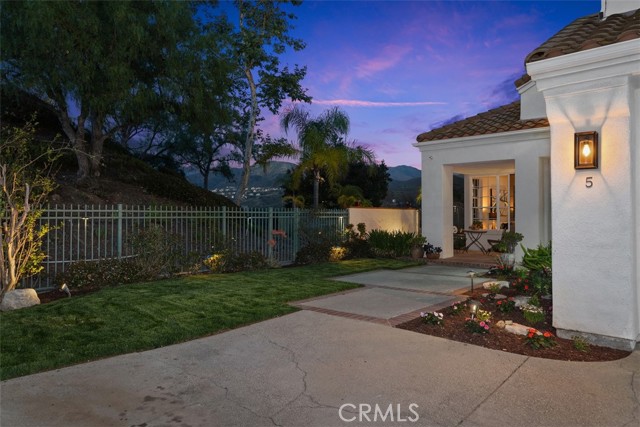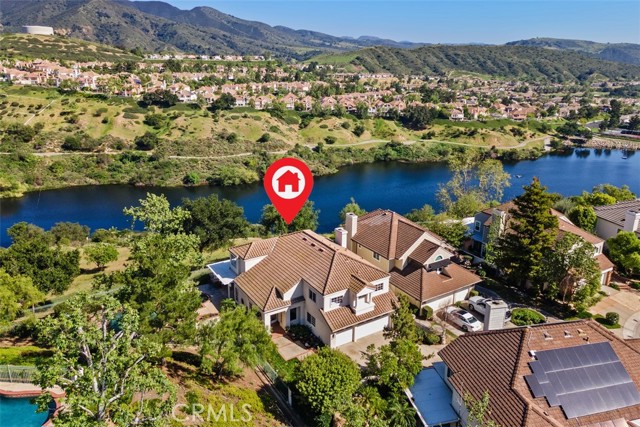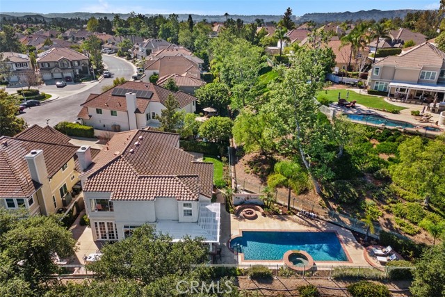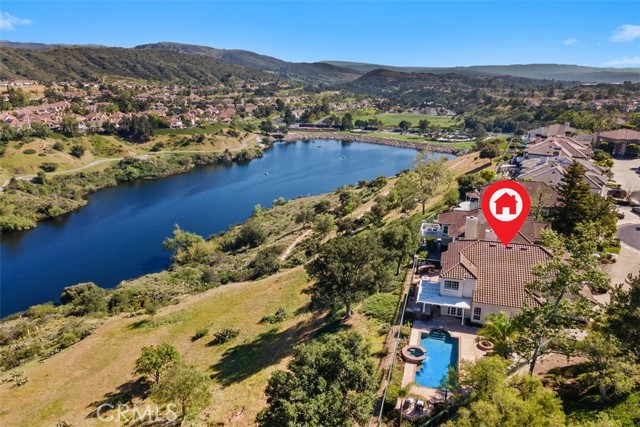 Perched at the end of a rare double cul-de-sac in the prestigious guard-gated community of Dove Canyon, 5 Highpoint offers over 3,100 square feet of refined living on an expansive 9,000 sq ft lot with exceptional privacy and truly spectacular panoramic views. From sunrise to sunset, the home captures sweeping vistas of the surrounding mountains, rolling canyon, and shimmering reservoir below. Elevated within the community and uniquely positioned on a flag lot (shared with just one more home with no neighbors on one side of the home), with no homes directly below, the property enjoys a commanding vantage point of unspoiled backdrop with no visual obstructions. A grand entry welcomes you with soaring ceilings and a striking spiral staircase, setting the tone for the home’s elegant and open concept design. A dedicated downstairs office (the 3rd garage converted to an office, not included in the listed square footage) features custom built-ins, central air heating and cooling and enjoys peaceful views of the mountains along with the home’s lush, welcoming entry landscape—creating an inspiring and private workspace. The longer driveway can accommodate multiple cars. The recently upgraded kitchen features quartz countertops and opens seamlessly to the Kitchen nook and the family room, ideal for both everyday living and entertaining. Upstairs, all four bedrooms are thoughtfully arranged, including a spacious primary suite with sweeping views and a spacious en-suite bath with the same views. One secondary bedroom features its own en-suite bathroom, while the remaining two share a convenient Jack and Jill bathroom. The resort-style backyard is an entertainer’s dream, complete with a Pebble Tech sparkling pool and spa, built-in BBQ bar, fire pit with seating, and unobstructed views in every direction. With no neighbor on one side and no homes below, the home offers rare privacy and tranquility. Residents of Dove Canyon enjoy premier amenities including 24-hour guard-gated security, a Jack Nicklaus signature private golf course, tennis/pickleball courts, a sports park, and hiking/biking trails. Ideally located just a short distance from shopping and dining, the Lakeridge Tract is part of the highly regarded Saddleback Valley Unified School District and is within walking distance to Santa Margarita Catholic High School, offering both convenience and an exceptional lifestyle in the heart of South Orange County.