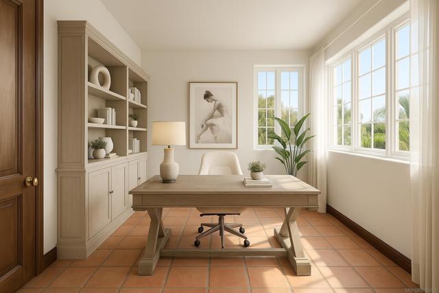 Tucked within the private guard-gated community of Rimrock Estates, 28889 Anderson Court offers a rare opportunity to experience one of North County’s best-kept secrets. Set among gorgeous custom estates on expansive parcels, this exclusive enclave is defined by vast panoramic vistas, ocean views, and exceptional privacy—a peaceful retreat where residents enjoy space, security, and a deep connection to nature. Often compared to Rancho Santa Fe for its estate-style living, Rimrock Estates offers a compelling alternative with remarkable value while maintaining the same sense of prestige, tranquility, and lifestyle appeal. Perched at approximately 1,750 feet above sea level, the property enjoys breathtaking south- and west-facing views, capturing golden sunsets, distant ocean horizons, and rolling mountain landscapes. The elevated setting creates a unique microclimate ideal for lush landscaping and offers endless possibilities for expanding the grounds. A long private driveway and classic porte-cochère arrival set the tone for the residence, where timeless Spanish Mission-inspired architecture blends seamlessly with the surrounding natural beauty. The home offers four bedrooms, including a spacious primary suite with sweeping views, and can easily live as a three-bedroom main residence with a 1,000-square-foot attached guest suite—perfect for multi-generational living, guests, or a private office or rental opportunity. The guest suite includes its own private entrance, bedroom, bathroom, office space, laundry hookups, and pre-installed plumbing and 220 electric for a futur