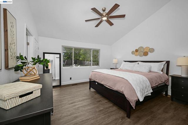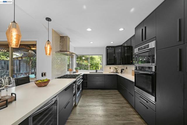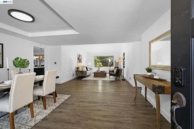 Beautiful single-story rancher in sought-after west side’s Twin Creeks neighborhood. Expanded and remodeled gourmet eat-in kitchen with quartz countertops, gas stovetop, SS appliances which opens to the family room. Amazing and large private backyard. 3 car garage with extra storge. Side yard access with possible boat/RV parking, Remodeled bathrooms. Newly painted. Vaulted ceilings. Amazing low HOA dues include use of community pool, tennis courts and clubhouse! Quiet suburban feel while only minutes from the Hwy 680 & 580, City Center, Bishop Ranch, Memorial Park, and East Bay Regional Park open space. Crazy low HOA fees.