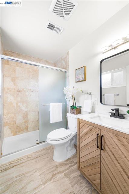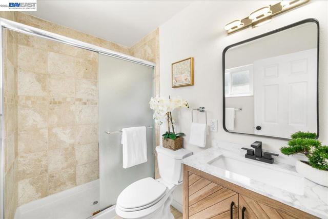 Beautifully reimagined ranch-style residence nestled in Fremont’s sought-after Blacow neighborhood, offering an exceptional blend of timeless charm and modern luxury. This light-filled 3-bedroom, 2-bath home has been thoughtfully upgraded over the past six years with refined finishes and meticulous attention to detail throughout. The stunning remodeled kitchen serves as the heart of the home, showcasing rich maple cabinetry, elegant granite countertops, and sleek tile flooring perfectly designed for both everyday living and entertaining. The bathrooms have been tastefully renovated with designer vanities, tile flooring, and custom tile shower and tub surrounds adorned with travertine walls and decorative inlays, creating a spa-like experience. Enhancements continue with gleaming hardwood floors, dual-pane windows, upgraded lighting, a 200-amp electrical panel, newer central heating and A/C, a newer roof, and improved attic insulation. A Tesla charger adds modern convenience for today’s lifestyle. The curb appeal is undeniable, highlighted by a beautifully landscaped front yard featuring paver accents, a limestone pathway, lush lawn, drip irrigation, and drought-tolerant plantings. The private backyard retreat is ideal for entertaining or unwinding, complete with pavers, a charming gazebo, a custom retaining wall with built-in seating bench, and mature landscaping. Ideally located near Hwy 880, premier shopping, dining, and major Silicon Valley employers, this home offers a rare opportunity to enjoy comfort, style, and convenience in one of Fremont’s most desirable communities. Open house Sat 5/2 & Sun 5/3 from 1:00-4:30 PM.