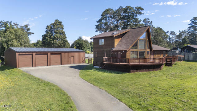 This stunning Tahoe-inspired home features soaring open-beam ceilings and expansive south-facing windows that fill the space with natural light and warmth throughout the day. The thoughtfully designed layout includes two bedrooms on the lower level, while the upper-level primary suite offers generous closet space and a full bath for added comfort and privacy.A standout feature of the property is the dream workshop--a spacious 40x60 three-bay structure complete with additional washer and dryer hookups, a full bathroom, and a fully enclosed office or storage area, making it ideal for a variety of uses.Situated at the end of a quiet cul-de-sac, this home offers a perfect balance of privacy and convenience. The current owner has taken great care of the property, including replacing the roof and maintaining it meticulously over time.