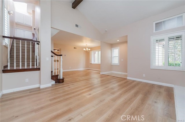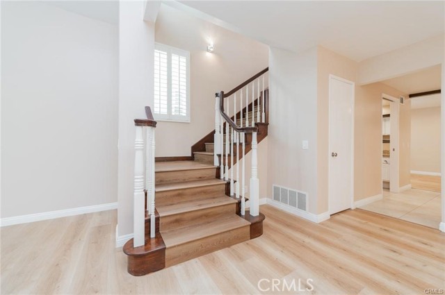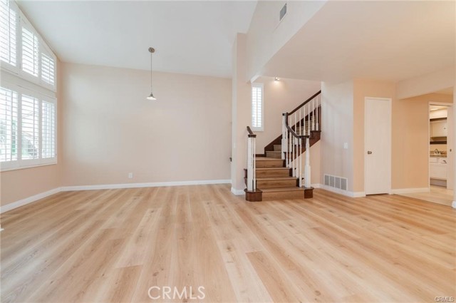 New upgraded single family detached home with 3 bedroom, 2.5 bath is in the highly sought Irvine School District. The front courtyard is private and invites you into the Formal Living & Dining area with plantation shutters. New interior painting and new wood flooring through out all the property. The updated kitchen remodel consists of Granite counters, counter for dining, newer tile flooring, recessed lighting, new painted cabinets and stainless steel Maytag appliances. The family room off the kitchen extends the living to the outdoor brick laid patio. The Master bedroom is spacious & bright, All of the bathrooms have newer granite counters & newer ceramic tile floors. Brick patio and Spanish tile roof. The property closes the access to the community pool. The convenient location, excellent schools, low HOA dues only $140 and low property tax NO Mello-Roos offer you the ideal home! You won't want to miss this opportunity!
