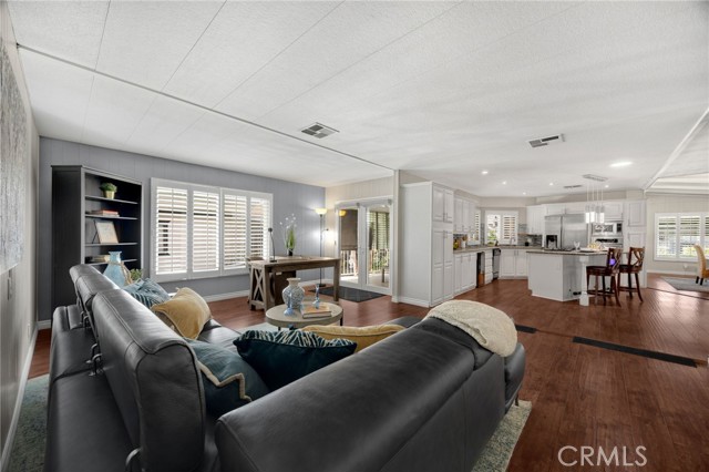 Welcome to this beautifully updated mobile home located in a desirable 55+ senior community, offering comfort, style, and convenience throughout. This spacious residence features a thoughtfully renovated kitchen and bathroom, showcasing modern finishes and quality upgrades. Designed with accessibility in mind, the home includes a wheelchair-friendly entrance and a functional, open layout. Enjoy generous living spaces, including a large living room, formal dining area, expansive family room, and an inviting entryway that creates a warm first impression. The primary suite is a true retreat, boasting an extra-large walk-in closet and a beautifully upgraded, oversized shower. Additional highlights include plantation shutters, a separate laundry room, and abundant storage throughout. Step outside to a large private patio—perfect for relaxing or entertaining—along with a two-car carport and an additional storage shed for your convenience. Residents of this welcoming community enjoy access to a sparkling swimming pool and a peaceful fishing lake, making it easy to embrace a relaxed and active lifestyle. This home truly has it all—space, upgrades, and a fantastic community setting. Don’t miss this exceptional opportunity!