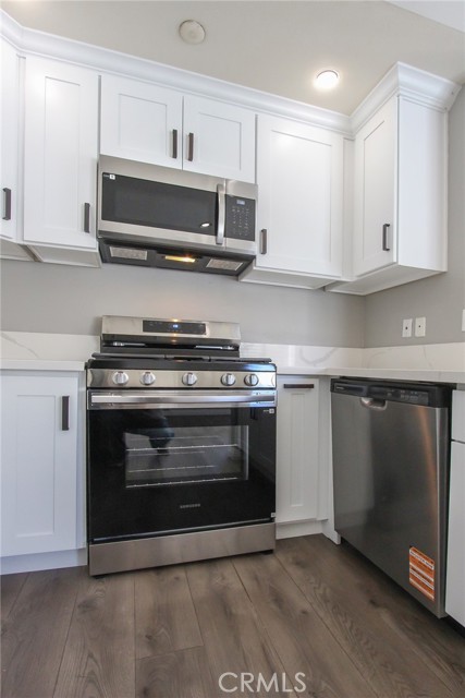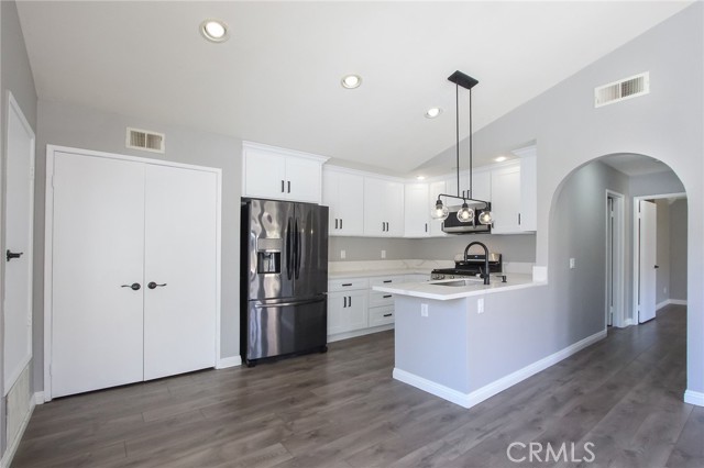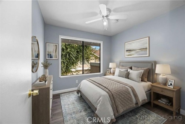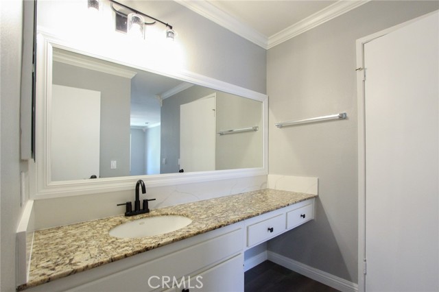 Discover this beautifully upgraded 2-bedroom, 1-bath condominium nestled within the desirable gated community of Crosspoint Village in Stanton. This inviting home features a fully remodeled kitchen showcasing modern cabinetry, sleek countertops, a stainless steel sink, stylish pendant lighting, and newer appliances including a range, microwave, and dishwasher—perfect for both everyday living and entertaining. The thoughtfully updated bathroom offers an elegant vanity and contemporary finishes, along with stackable washer and dryer closet, while the interior boasts vaulted ceilings, attractive laminate flooring, and fresh paint throughout, creating a bright and welcoming atmosphere. Situated on the second floor, the spacious primary bedroom includes a walk-in closet and convenient access to a generously sized vanity area. A large private landing at the entry adds an extra touch of comfort and functionality. Tucked away from the main streets and boulevard, this home enjoys a peaceful, quiet setting within the community. Residents of Crosspoint Village benefit from resort-style HOA amenities, including multiple pools, spas, beautifully maintained greenbelts with mature trees, and the added security of 24-hour guard-gated access. This is an exceptional opportunity to own a move-in ready home in a well-maintained, tranquil community.