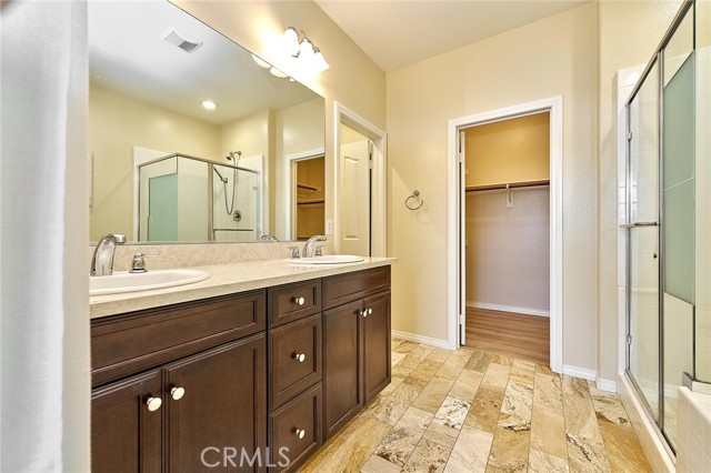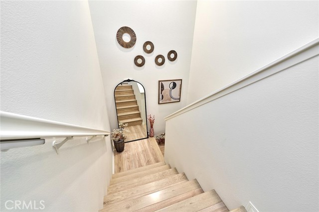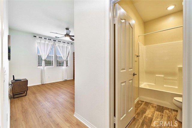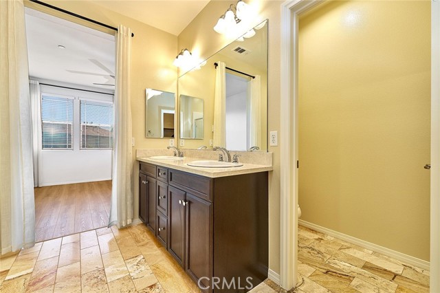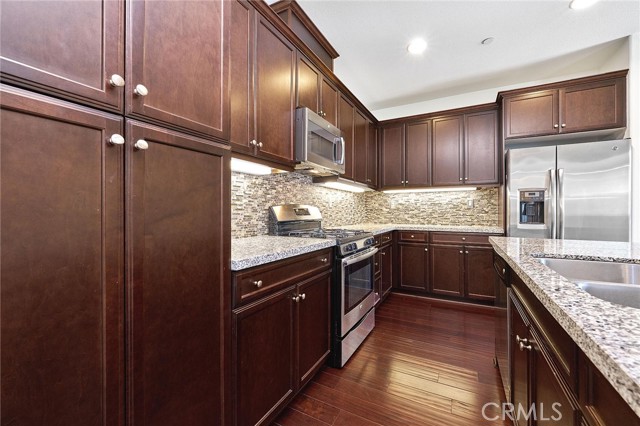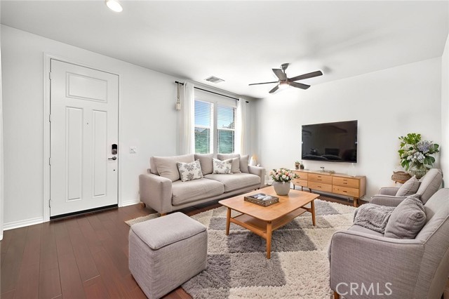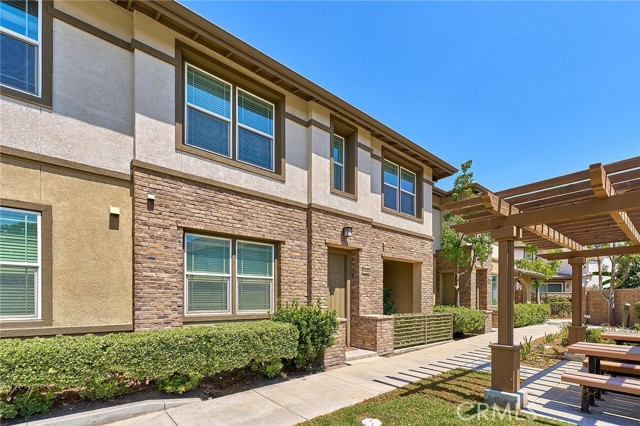 Welcome to this beautifully upgraded two story townhouse located in the highly desirable Morgan Square neighborhood within the College Park community of Chino. This well maintained home offers 2 spacious bedrooms and 2.5 bathrooms, combining modern comfort with an exceptional location. Unlike many homes in the community, this residence enjoys an open front setting with no buildings directly in front, allowing for a more open feel and pleasant views. The open concept main level features wide plank hardwood flooring throughout, a bright and inviting great room, and a dedicated dining area. The gourmet kitchen is designed for both functionality and style, showcasing granite countertops, a mosaic tile backsplash, custom cabinetry, stainless steel appliances, and a center island perfect for everyday living and entertaining. A generously sized powder room and a private covered patio provide added convenience and ideal indoor and outdoor living. Upstairs, you will find a convenient laundry room and two private en suite bedrooms. The primary suite features dual vanities, Travertine flooring, a separate soaking tub and shower, a walk in closet, and a private toilet room. The secondary suite also includes its own full bathroom, offering flexibility for guests or multi generational living. Additional highlights include a 2 car attached garage, tankless water heater, and designer interior paint. The home is also energy efficient with well maintained heating and cooling systems that help keep utility costs low throughout the year. Ideally situated facing the community picnic area with a playground just steps away. Residents of College Park enjoy resort style amenities, including two swimming pools, a spa, kids splash zone, fitness center, clubhouse, BBQ areas, multiple parks, basketball and tennis courts, and more. Located within the award winning Chino Valley Unified School District and close to shopping, dining, and major freeways, this home offers an outstanding opportunity for comfortable living in a vibrant community.