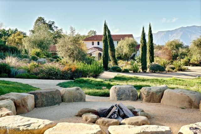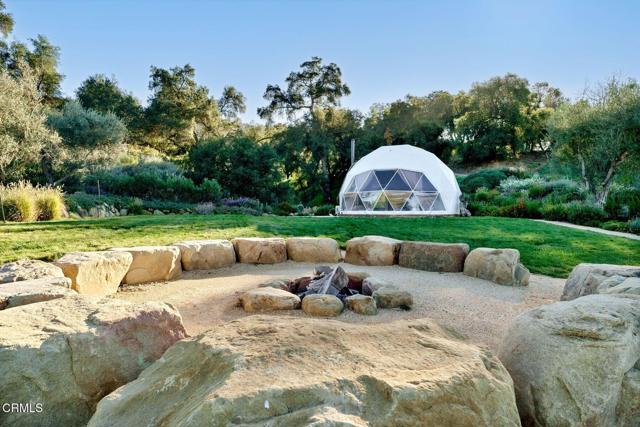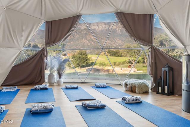 More than a home, this exceptional Ojai estate is a rare retreat-style compound offering privacy, scale, and versatility across over ten acres with unobstructed Topa Topa Mountain views. Designed as both a luxury residence and a retreat or event venue, it delivers a truly unique lifestyle.The main residence spans 5,200+ sq ft and is complemented by a custom Tiny House and two imported geodesic domes. Featured in Architectural Digest, the home showcases exceptional design and craftsmanship. Imported travertine is seamlessly integrated throughout--from sunlit pool terraces and expansive decks to refined interior accents--blurring the line between indoor and outdoor living. The home's orientation maximizes natural light, balance, and flow.Indoor-outdoor living centers around a California room with a built-in fireplace, opening to a fully equipped outdoor kitchen ideal for year-round entertaining.Wellness is a core feature, highlighted by a medical-grade, multi-stage HEPA air filtration and dehumidification system on both floors. The primary suite is fully EMF-shielded, creating a Faraday-style environment designed for rest and restoration.The grounds offer a private resort experience with a saltwater pool and spa, lighted pickleball and basketball courts, in-ground LED-lit trampoline, putting green, expansive sports field, koi pond with waterfall, fire pit, and DG walking paths. Two imported domes--ideal for yoga, guests, or retreat use--enhance flexibility.Additional features include a shared private well, regenerative orchard with fruit and avocado trees, full solar with Tesla backup batteries, EV charging, Starlink Wi-Fi, gated private road access, perimeter security, fire-conscious landscaping, and a 5,000-gallon backup water tank. The garage has been converted into a full gym.A rare offering suited for a primary residence, second home, or retreat--capturing the very best of Ojai luxury living.