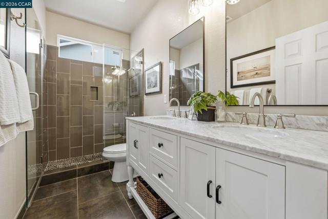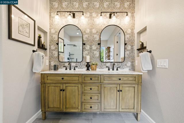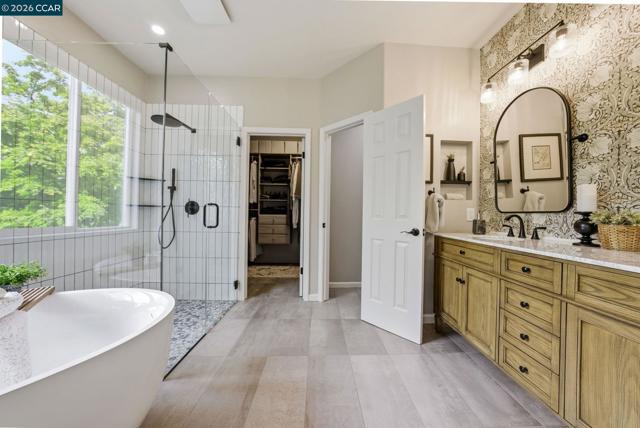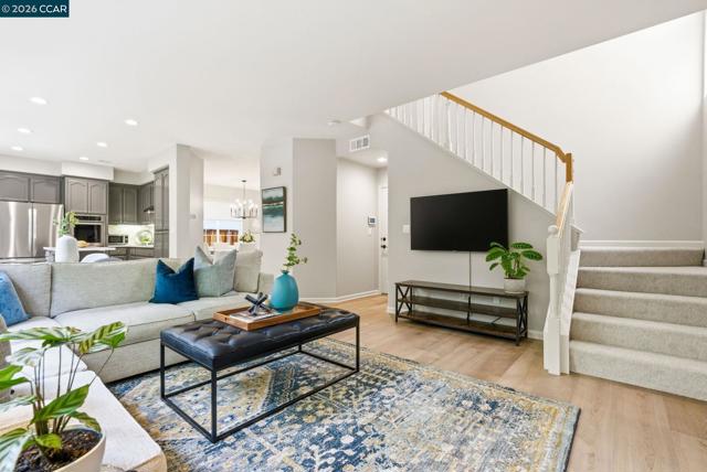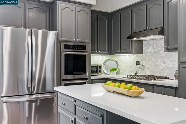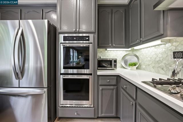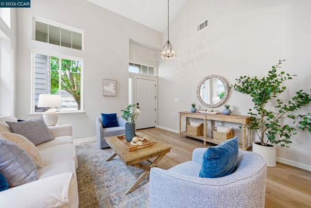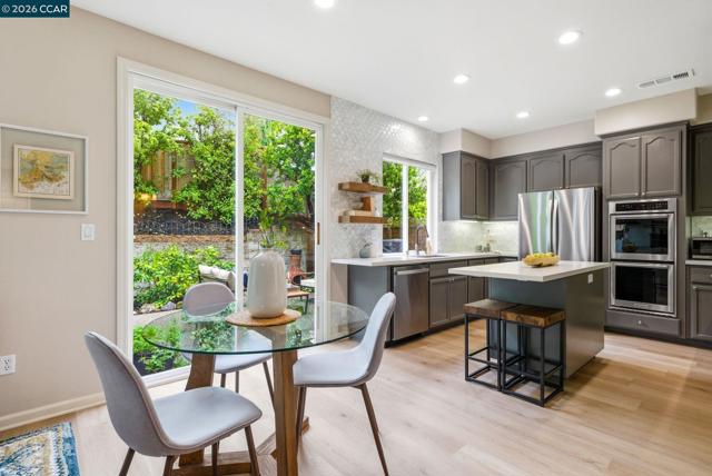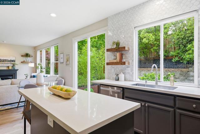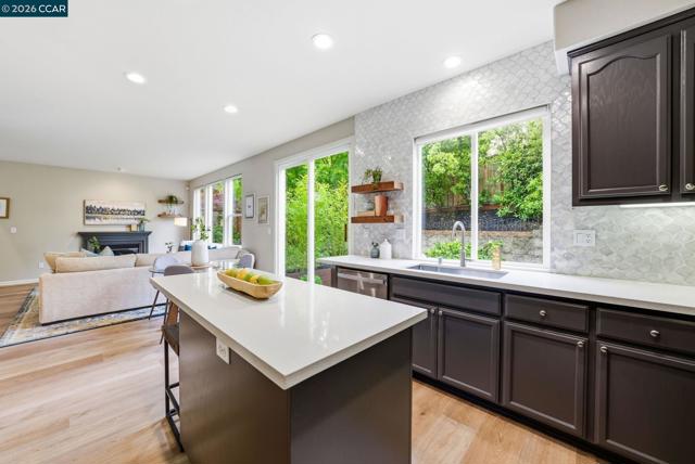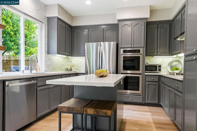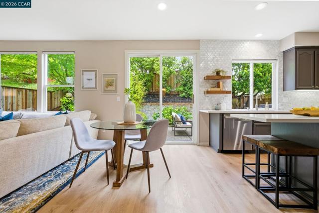 Enjoy California living at its best in this beautifully updated home in the heart of San Ramon. Filled with natural light and designer touches throughout, this move-in ready home offers generous living spaces and an ideal layout for both everyday living and entertaining. A welcoming living room and formal dining room set the stage for refined living, while the open-concept gourmet kitchen—featuring quartz countertops, central island, newer appliances, gas cooktop, double ovens, floating shelves, and a striking custom tile backsplash—flows effortlessly into the expansive family room and stunning backyard retreat. Luxurious vinyl plank flooring and a cozy fireplace add warmth and elegance throughout the main living areas. Upstairs, an exquisite primary suite awaits, offering a spa-inspired designer bathroom with a soaking tub, oversized shower, Pottery Barn dual sink vanity, gorgeous wallpaper, elegant hardware, and a walk-in closet with custom built-in storage. Three additional spacious bedrooms, updated main bathroom, and dedicated laundry area complete the optimal design for easy everyday living. Step outside to your own private retreat—an entertainer’s delight with a mature Japanese maple tree, curated planters, lemon and lime trees, azaleas, and inviting spaces perfect for relaxing or hosting gatherings. Ideally located near top-rated San Ramon schools, premier shopping and restaurants, parks, recreation, and great commute access, this home checks all the boxes!