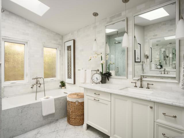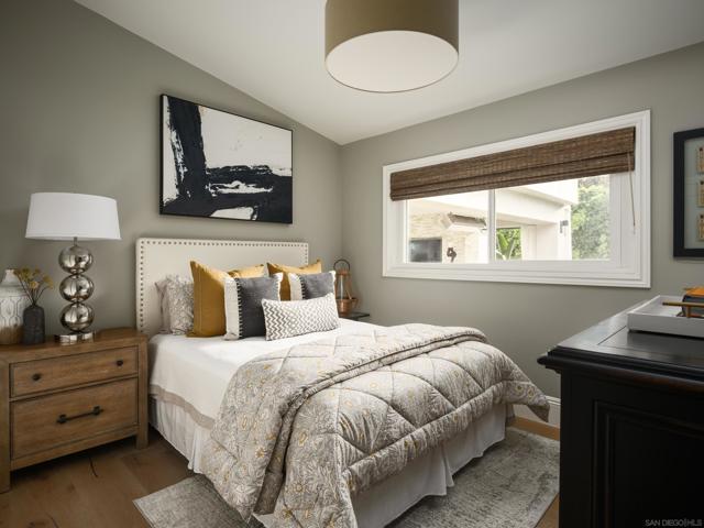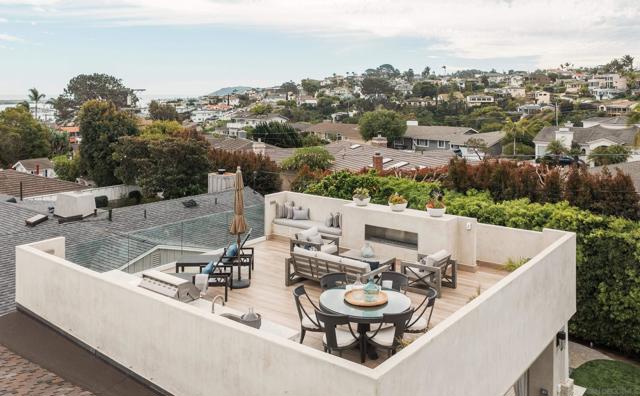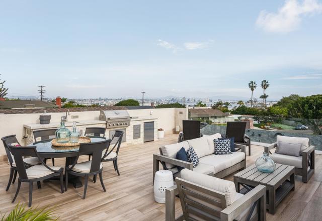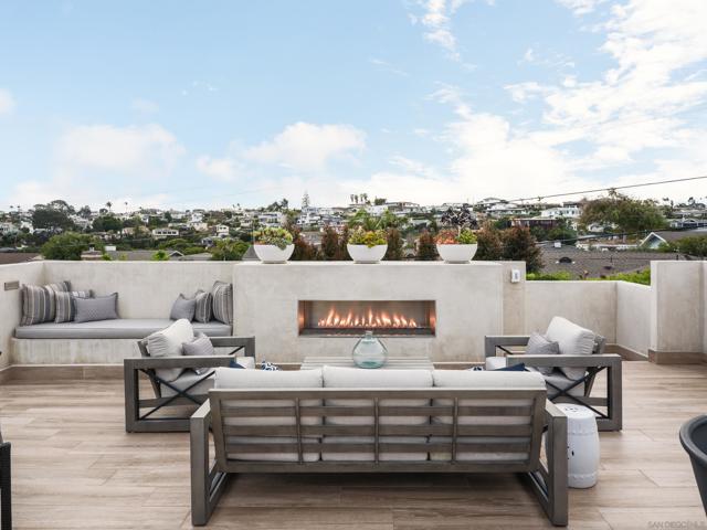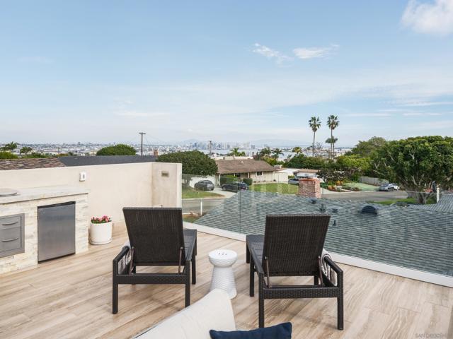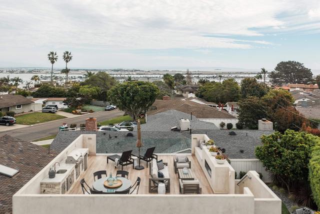 Some homes are built. Others are cultivated. When the current owners purchased this Point Loma contemporary in 2017 as new construction, they began a years-long process of making it exceptional. What started as one of Fleetridge's most thoughtfully designed new builds has since been elevated into something rare, a home with architectural integrity and a deeply personal touch. Spanning 2,403 square feet of immaculately finished interior space, this California Cape Cod offers 4 beds, 4 baths, 4 fireplaces, vaulted ceilings, and French oak flooring throughout. The chef's kitchen with Sub-Zero refrigeration, Wolf range, and walnut island opens seamlessly to a beautifully landscaped, low-maintenance backyard entertaining space that makes indoor-outdoor living feel effortless. The 700 sqft rooftop deck delivers unobstructed 180-degree bay, city, and ocean views protected permanently by Fleetridge height restrictions. The primary suite features a wet bar, designer closet, and fireplace. The state-of-the-art media room, fully equipped with the latest home theater technology, converts easily into a fourth bedroom. Sonos and Savant smart home systems throughout. Owned solar, paid in full, keeps your utility bill essentially at zero. Immaculate condition. Attention to detail at every turn.