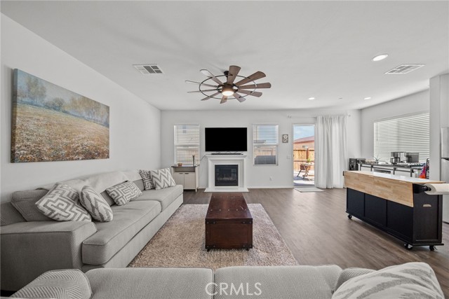 Clean, move-in ready 4-bedroom home built in 2021—one of the few newer options in this price range. Thoughtfully upgraded with LED lighting throughout (all dimmable), a whole house fan to help keep cooling costs down, and an energy-efficient tankless water heater. Front and back yards feature full irrigation for easy maintenance. The kitchen features quartz countertops, with the same finish carried into the bathrooms for a clean, modern look throughout. Kitchen also includes dishwasher, stove, and microwave range, and the seller is including a charcoal offset smoker—perfect for outdoor cooking and entertaining. For qualified VA buyers, there is an opportunity to assume the existing loan at 3.25%, offering a major advantage over today’s rates. Located in a quiet Rosamond neighborhood with convenient access to the 14 freeway and Edwards Air Force Base.