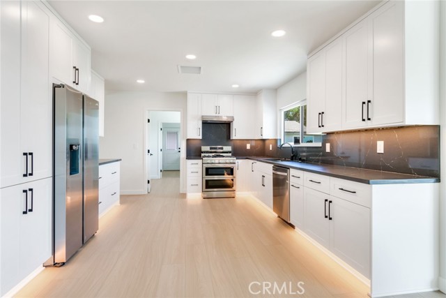 ADU! ADU! Nestled in the scenic foothills of Glendora and surrounded by mature trees, this fully remodeled ranch-style home offers the perfect blend of modern comfort and natural beauty. Spanning approximately 2,500 square feet, the main residence features four spacious bedrooms and 2.5 bathrooms, thoughtfully designed for both everyday living and effortless entertaining. Step inside to find luxury vinyl plank flooring throughout, a light-filled open layout, and a beautifully updated kitchen complete with abundant cabinetry, ambient lighting, and generous prep space. An indoor laundry room and a four-car garage add convenience and functionality, while south-facing views provide a serene backdrop to call home. A standout feature of this property is the rare and highly desirable detached ADU—a 625-square-foot retreat complete with its own one-car attached garage, private entrance, and a luxurious one-bedroom, one-bath layout. Ideal for multigenerational living or as a premium rental opportunity, the ADU offers flexibility and income potential, with the ability to create a separate, private yard space. Extensively upgraded throughout, the property includes all-new dual-pane windows, new HVAC systems with updated ducting, new electrical panels and wiring, new plumbing and lighting fixtures, new water heaters, and a freshly poured concrete driveway. The newly landscaped grounds further enhance the home’s curb appeal and outdoor enjoyment. Located near award-winning schools, scenic hiking trails, and the vibrant charm of downtown Glendora, this property combines lifestyle, location, and long-term value in one exceptional offering. Information deemed reliable, buyer to verify.