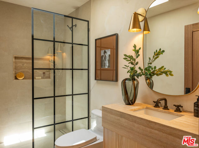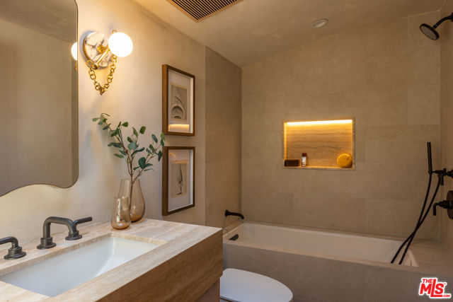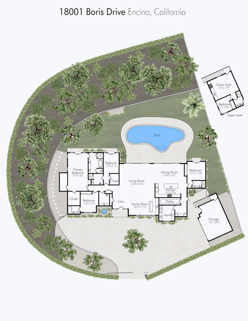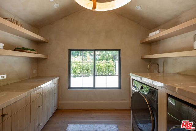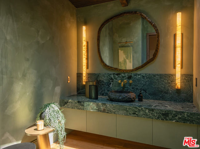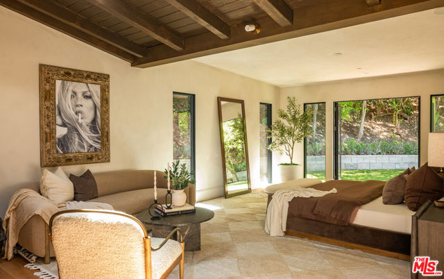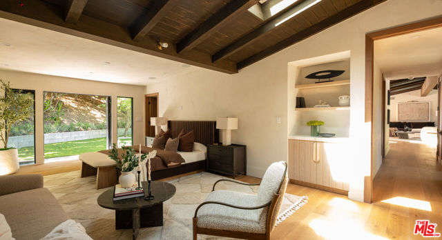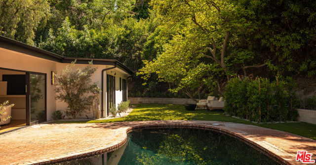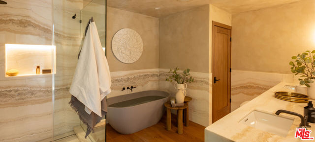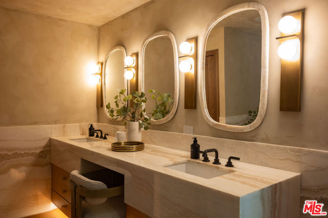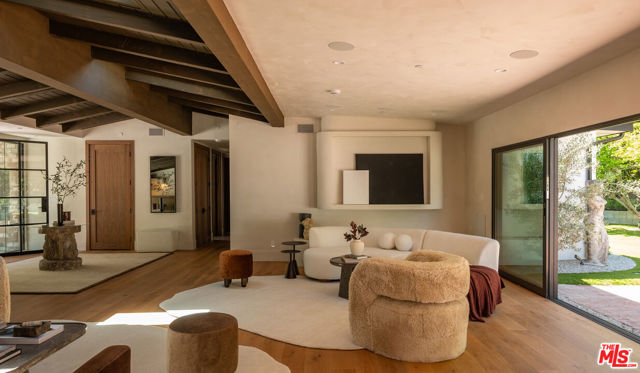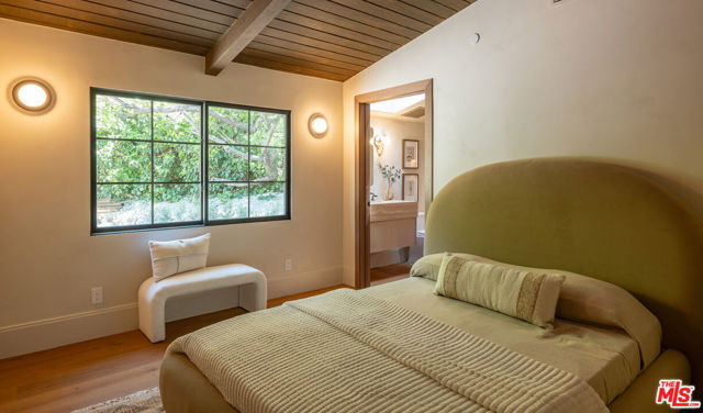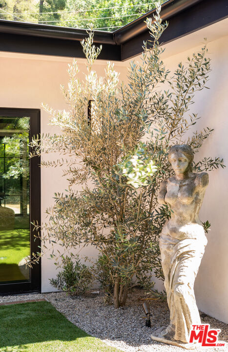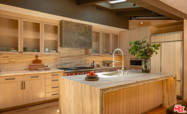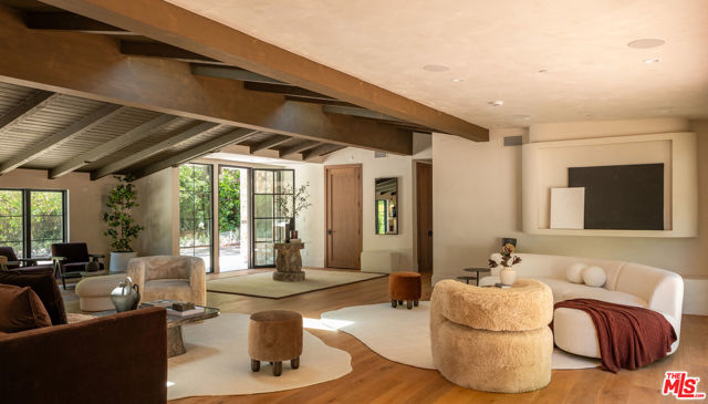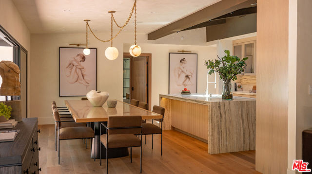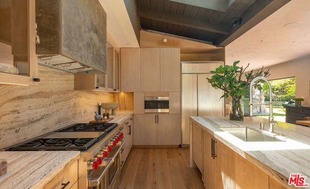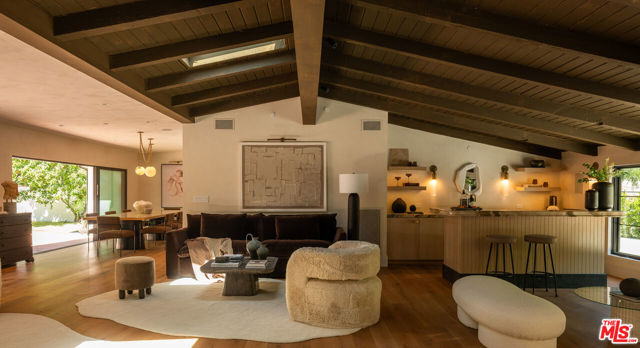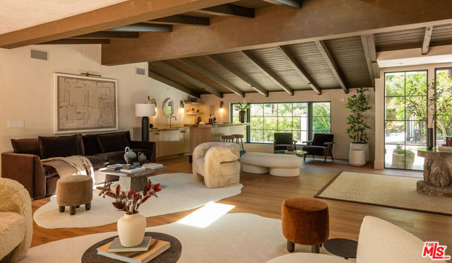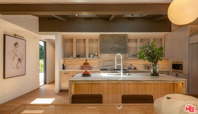 A beautifully curated single-story residence in the heart of Encino, masterfully designed by Atelier Slim Keskes. Offering 5 bedrooms and 6 bathrooms, each bedroom is thoughtfully designed as a private ensuite, creating a seamless blend of comfort and functionality throughout. Pitched ceilings and lime-washed walls create an airy, textured backdrop, complemented by rich walnut floors and doors, and custom white oak cabinetry throughout. The kitchen is a true showpiece, finished with Tuscan white resin-filled travertine offering the beauty of a high-end natural stone with the durability and ease for everyday living and outfitted with top-of-the-line Wolf and Miele appliances, seamlessly opening to the main living spaces and outdoors. Bathrooms throughout are appointed with polished onyx, including a stunning primary suite featuring dual closets and a spa-like ivory onyx bath. Custom designer lighting is showcased throughout, adding a layer of understated elegance in every room. The flat backyard offers a private retreat with a beautifully designed pool, ideal for both relaxing and entertaining. A fully realized ADU mirrors the same elevated aesthetic and level of design as the main residence, creating a seamless extension of the property. Even the laundry room has been elevated into one of the most thoughtfully designed spaces in the home. A rare blend of design, quality, and comfort this is Los Angeles living at its finest.