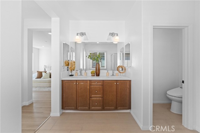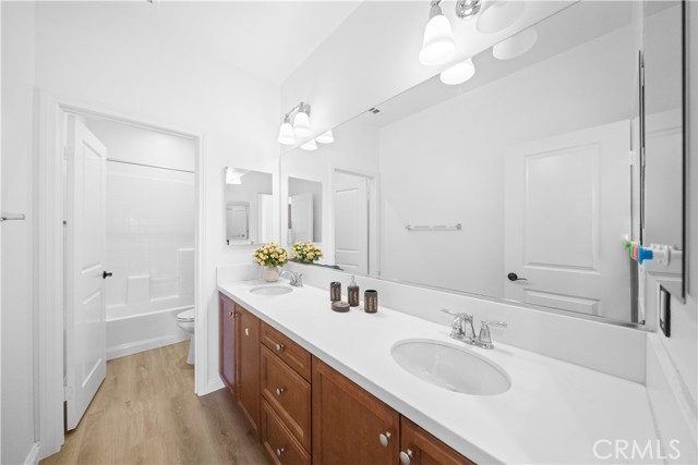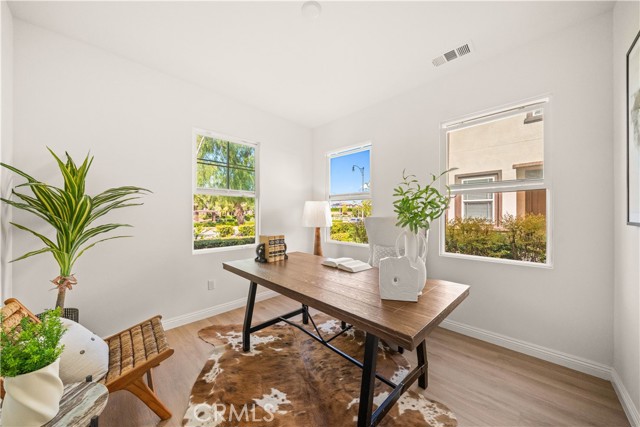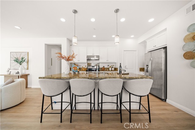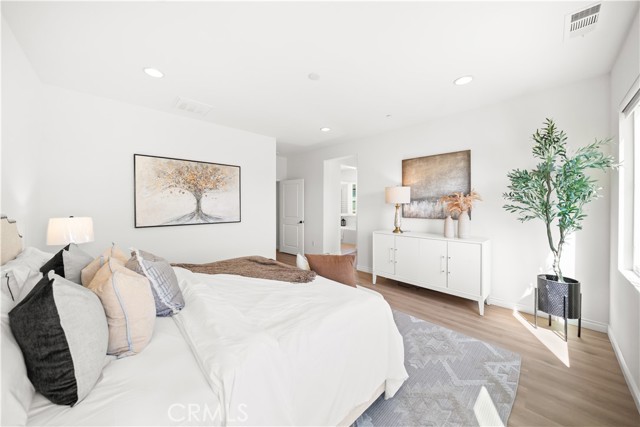 Beautiful two-story home located in the highly desirable College Park community of Chino. This spacious home features 4 bedrooms and 3 bathrooms, including one bedroom and one full bathroom on the main level, ideal for guests or multi-generational living. There is also an optional room on the first floor that can be converted into a fifth bedroom. Fresh interior paint and newly installed waterproof flooring give the home a modern, move-in ready feel. The open-concept kitchen features granite countertops, ample cabinetry, and a walk-in pantry. The bright dining area flows seamlessly into the living room, creating a comfortable and inviting space. Detached two-car garage with newly upgraded epoxy flooring, offering a sleek look, easy maintenance, and long-lasting durability. Upstairs, the primary suite offers dual sinks, a soaking tub, separate shower, and a spacious walk-in closet. A dedicated laundry room with additional storage adds convenience. The backyard features vinyl fencing, a BBQ station, and beautifully maintained rose bushes, providing privacy and perfect for relaxing or entertaining. Community amenities include pools, tennis court, spa, fitness center, parks, BBQ areas, and recreation spaces. Walking distance to Ayala Park and Chaffey College, offering great access to outdoor activities and a vibrant college atmosphere. Conveniently located near schools, shopping, dining, and with easy access to the 71, 91, and 60 freeways. A must-see!