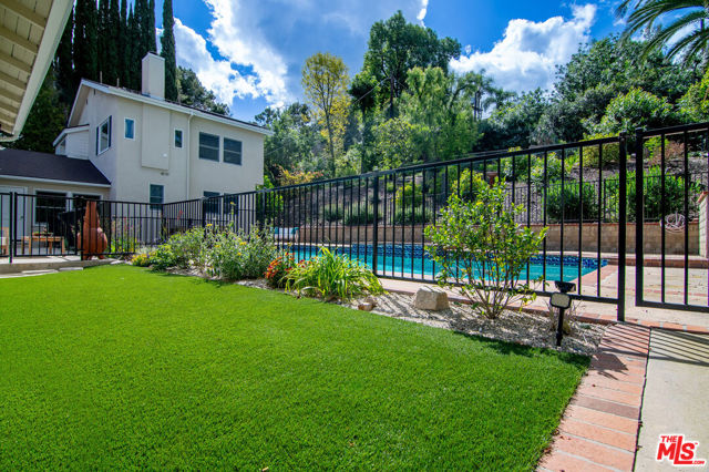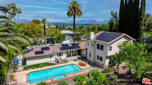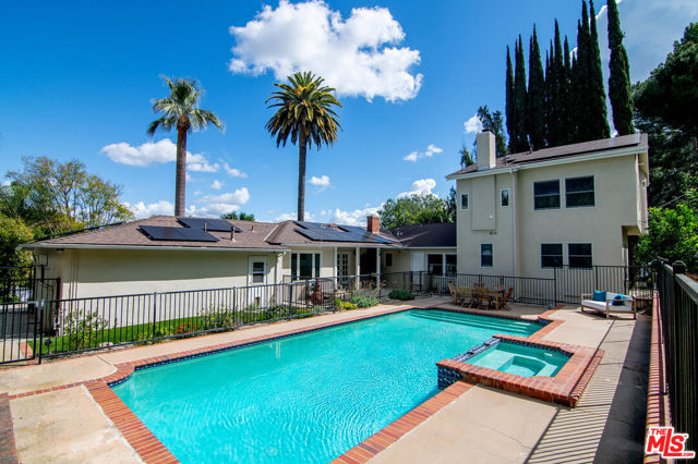 Nestled on an expansive 22,227 square foot lot in a prime Encino location south of Ventura Boulevard, this exceptional 5-bedroom home offers the perfect blend of space, privacy, and scenic beauty. Tucked away on a quiet street and surrounded by mature landscaping, it's designed for both comfortable living and effortless entertaining. The spacious floor plan features generous living areas filled with natural light, seamlessly connecting indoor and outdoor spaces. The luxurious upstairs primary suite is complete with a private sitting area, cozy fireplace, and breathtaking mountain views that create a true retreat-like experience. Step outside to your own backyard oasis, where a large pool and spa are set against the backdrop of serene surroundings - ideal for relaxing or hosting gatherings. The expansive grounds provide ample room for recreation, entertaining, or future enhancements. An extraordinary opportunity to own a private retreat with sweeping views in one of Encino's most coveted enclaves.