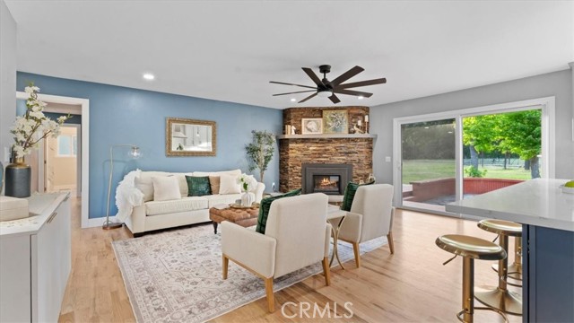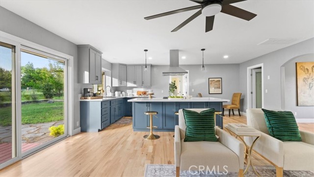 Set in the highly sought-after Butte Valley and within the Durham Unified School District, this beautifully renovated property offers the perfect blend of comfort, space, and scenic surroundings. Situated on nearly 3 level acres with stunning views and year-round Clear Creek running through the back of the property, this is a rare opportunity to own a truly special piece of land. The nearly 2,000 sq. ft. home features 4 bedrooms and 2 bathrooms with a thoughtfully designed layout, including an open-concept living and kitchen area ideal for everyday living and entertaining. The kitchen is a standout, featuring a large island with a gas cooktop and bar seating, along with a huge walk-in pantry conveniently located just off the kitchen. A formal dining room adds additional space for gatherings. No detail was overlooked in the complete top-to-bottom renovation. The home showcases restored original hardwood floors, a brand-new roof, and owned solar for energy efficiency and long-term savings. Step outside to enjoy the attached deck with a hot tub—perfect for relaxing while taking in the peaceful views. The property also includes an attached garage, carport, and shed, providing ample space for storage, hobbies, or equipment. This is country living at its best—modern upgrades, usable acreage, and a picturesque setting all in one exceptional property.