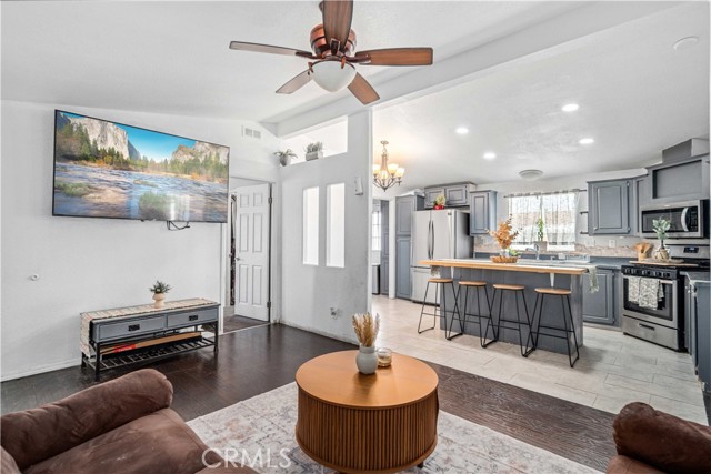 ***LIVE BEAUTIFULLY*** Updated Mobile Home w/ An Open-Concept Layout, Vaulted Ceilings, And An Inviting Outdoor Deck! Step inside to a spacious living area featuring vaulted ceilings, abundant natural light, and rich, modern flooring that flows throughout the home. The upgraded kitchen is a standout, offering sleek gray cabinetry, stainless steel appliances, a stylish backsplash, and a large center island with butcher block top and bar seating that opens seamlessly to the main living space—perfect for both everyday living and entertaining. The primary bedroom is bright and airy with generous natural light and a walk-in closet, while the bathroom has been tastefully updated with a modern vanity, quartz countertops, and a shower-in-tub combo. Additional highlights include a dedicated laundry and mud room with its own separate entrance, providing added convenience and extra storage space. Outside, enjoy a covered awning, a charming enclosed porch area, an extended deck ideal for relaxing or hosting, and a backyard shed for even more storage. A well-maintained home that blends comfort, style, and functionality with great indoor-outdoor living!