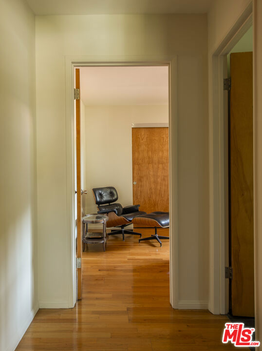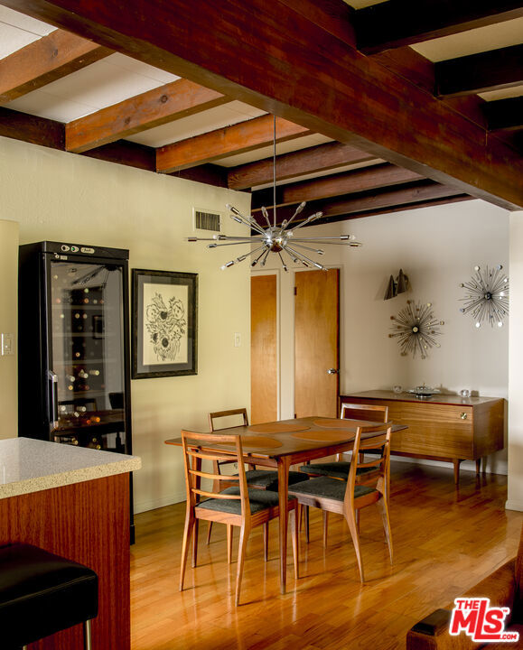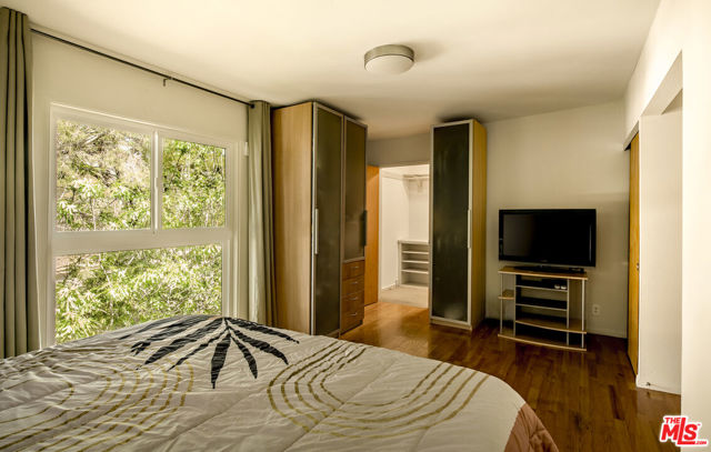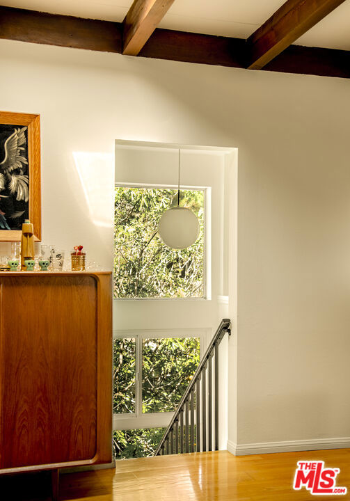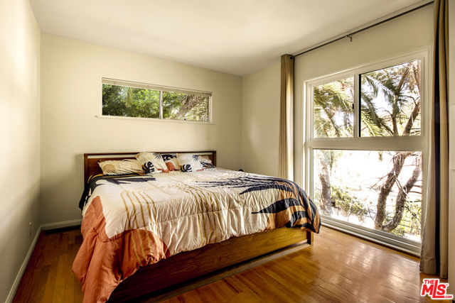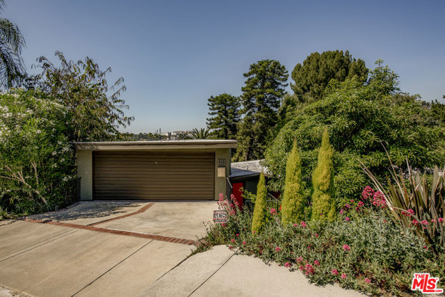 Sited in the Hollywood Hills, this mid-century Modern residence is defined by its exposed wood beam ceilings and open-concept design. The property delivers a versatile layout with multiple living spaces and a thoughtful indoor-outdoor flow, capturing the essence of classic mid-century architecture. Across the home, four bedrooms and four bathrooms are well distributed. Three bedrooms are located on the main level, while the lower level features a separate living area with a full bath and downstairs kitchen. An additional attached unit includes its own bedroom, living room, kitchen, and private exterior entrance. Multiple spaces create flexibility for extended living, guests, or potential income opportunities. The main living area connects seamlessly to the kitchen, where stainless steel appliances and ample cabinetry support both everyday use and entertaining. Natural light fills the interiors, highlighting the warmth of the wood detailing and the scale of each space. A series of outdoor areas offer space to lounge and dine al fresco, all while taking advantage of the hillside views and surroundings. Additional features include a two-car garage, generous storage throughout, and a number of recent system and infrastructure updates that enhance overall livability. Positioned near the 101 freeway, the property provides convenient access to the nightlife of West Hollywood, the studios, dining, and the everyday conveniences of Studio City, all within the highly sought-after Valley View Elementary School district.
